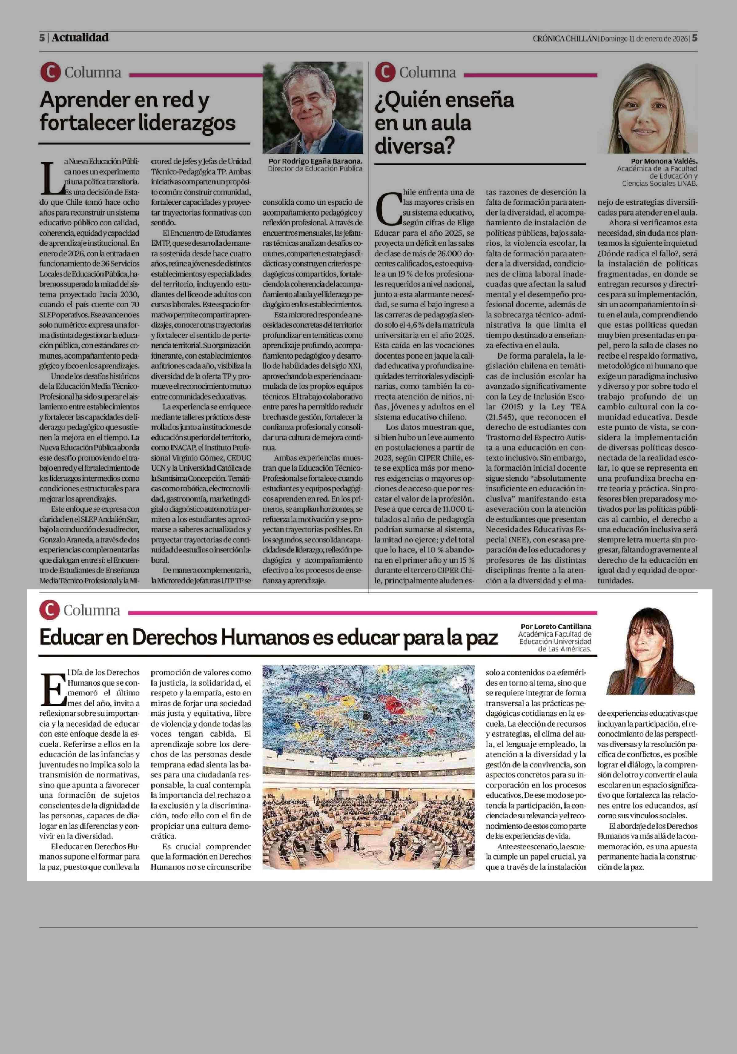 Columnas de Opinión: Educar en Derechos Humanos es educar para la paz 11-01-2026 Crónica de Chillán |
