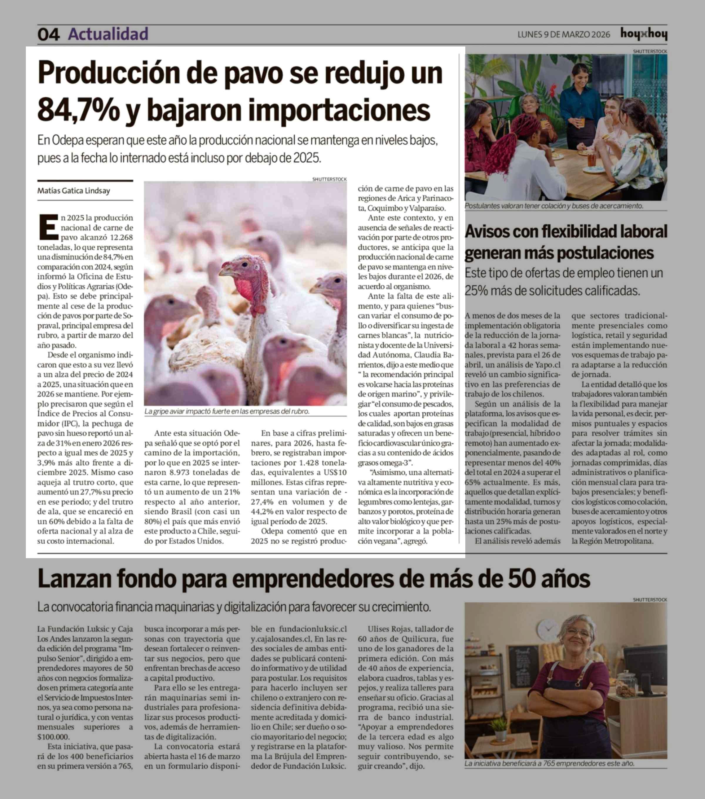 Producción de pavo se redujo un 84,7% y bajaron importaciones 09-03-2026 Hoy x Hoy |