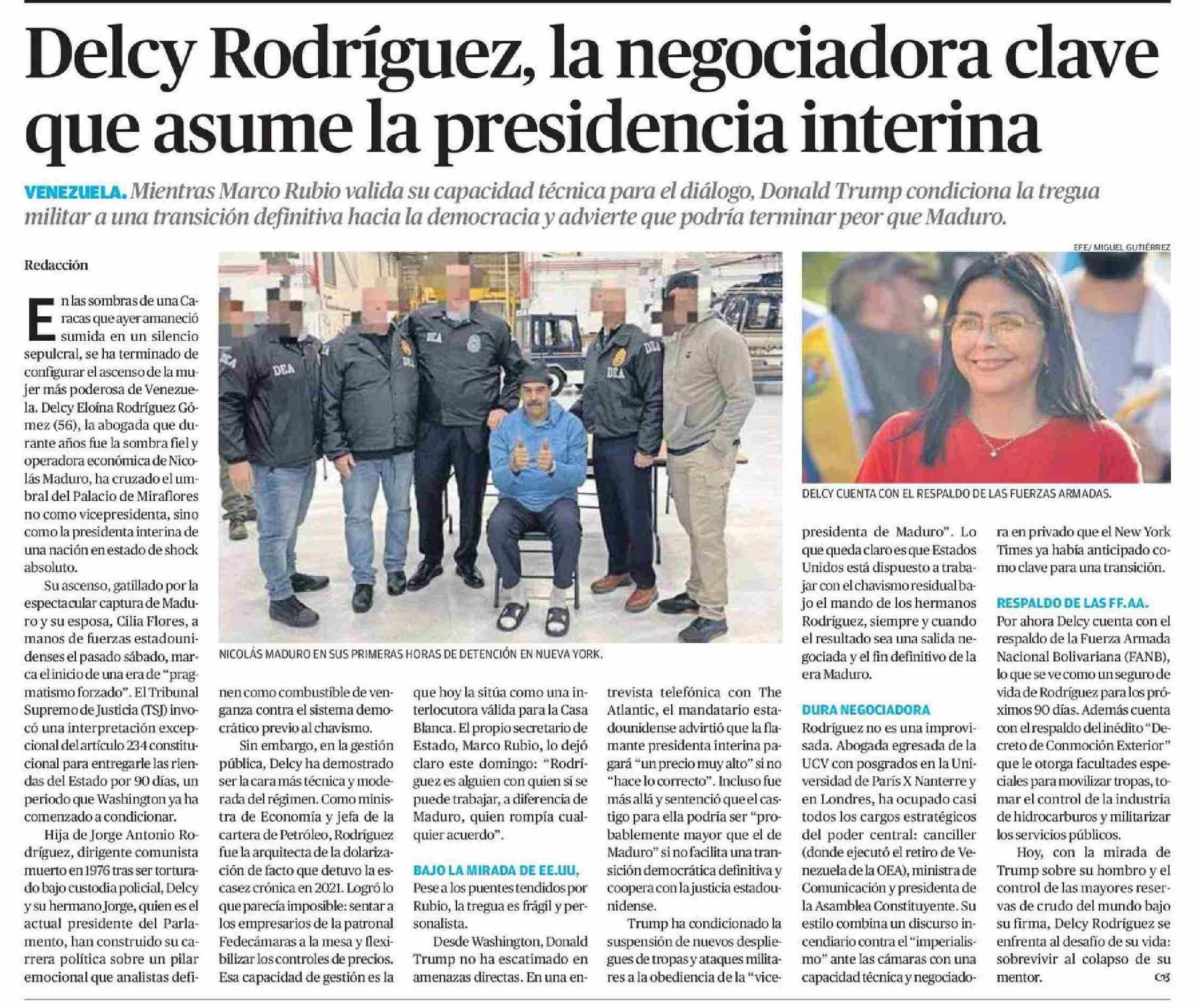 | Título: | Delcy Rodríguez, la negociadora clave que asume la presidencia interina |