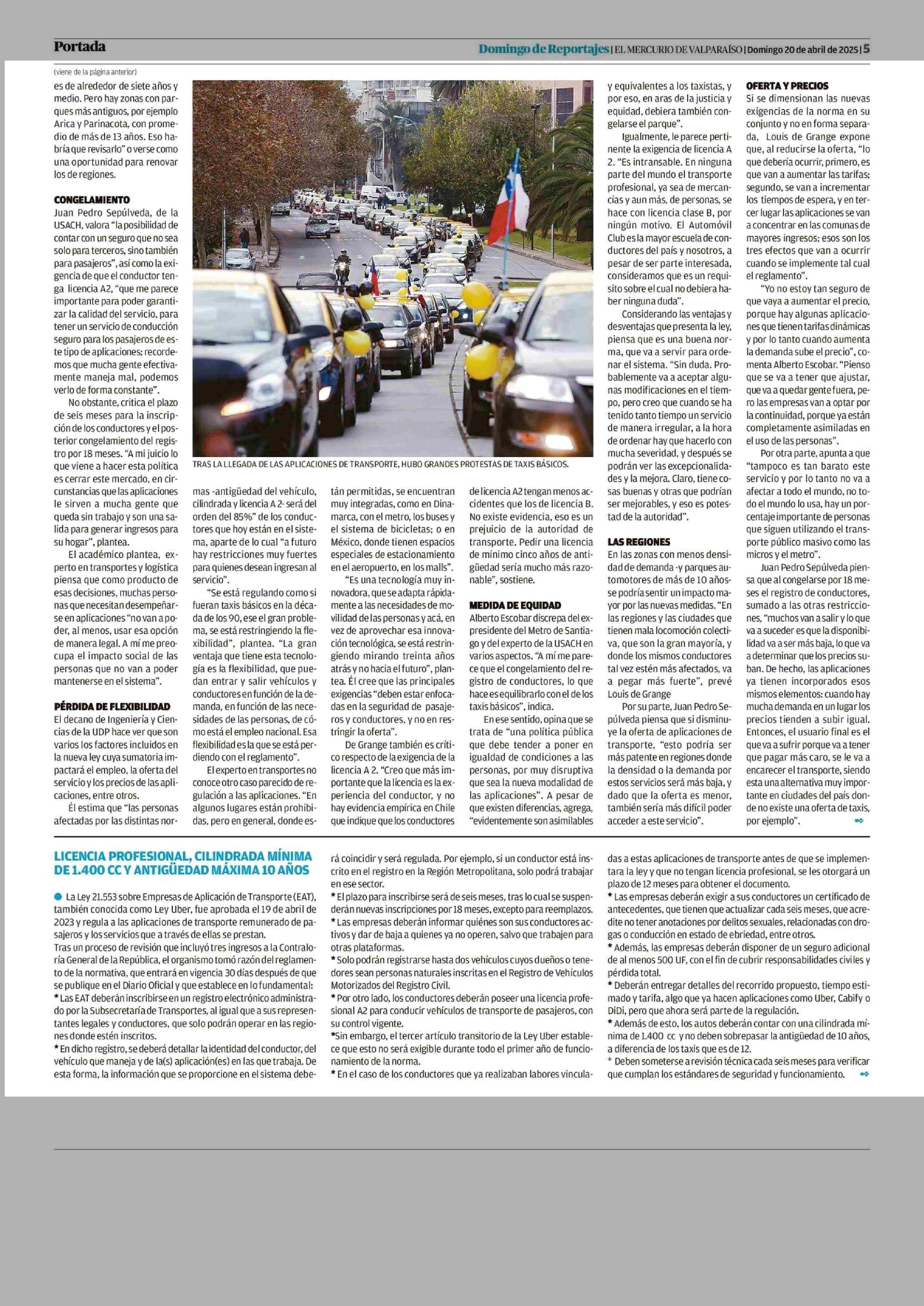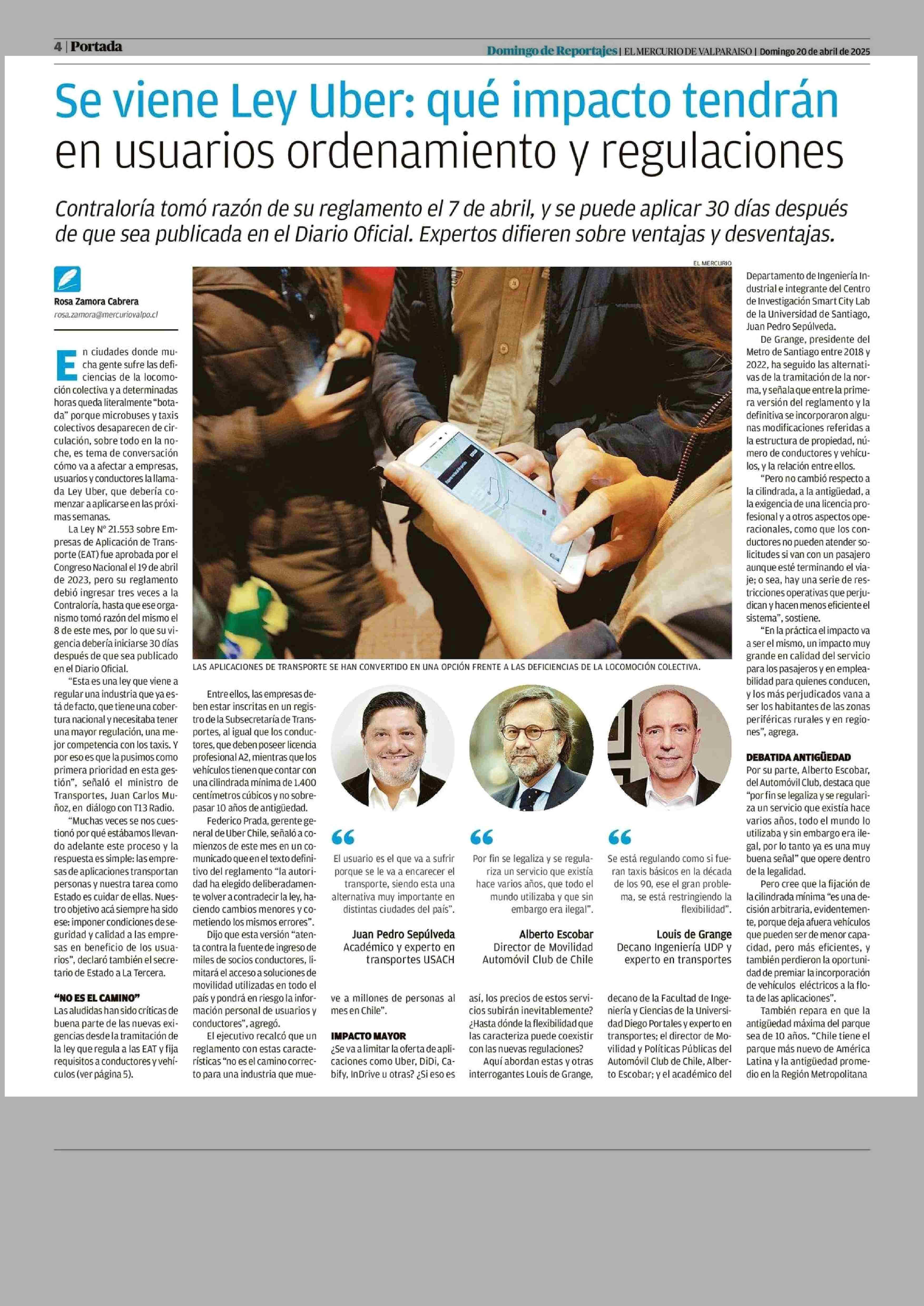 Se viene Ley Uber: qué impacto tendrán en usuarios ordenamiento y regulaciones 20-04-2025 El Mercurio de Valparaíso |