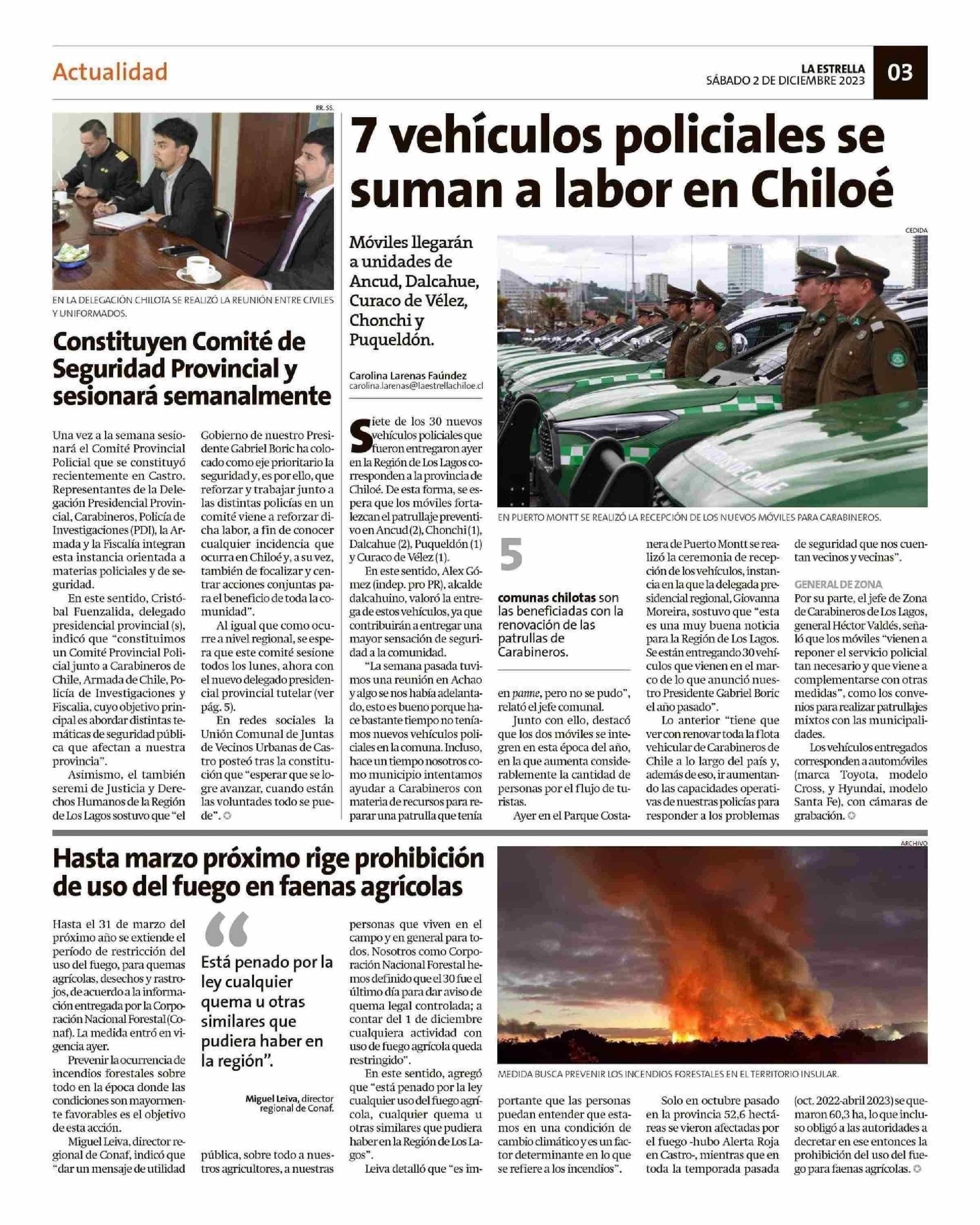 Constituyen Comité de Seguridad Provincial y sesionará semanalmente 02-12-2023 La Estrella de Chiloé |