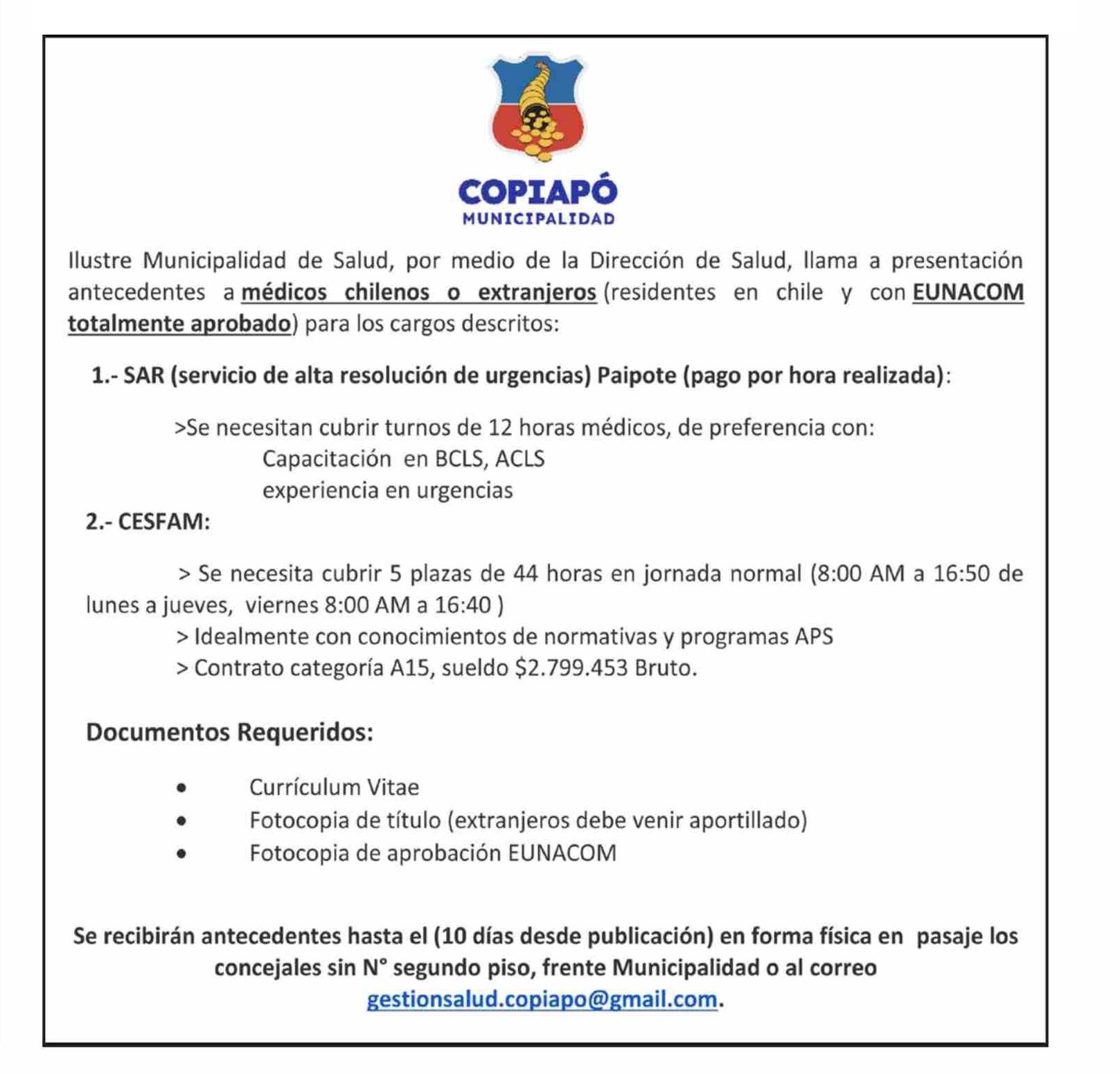 | Título: | AVISO LICITACIONES: MUNICIPALIDAD DE COPIAPÓ |