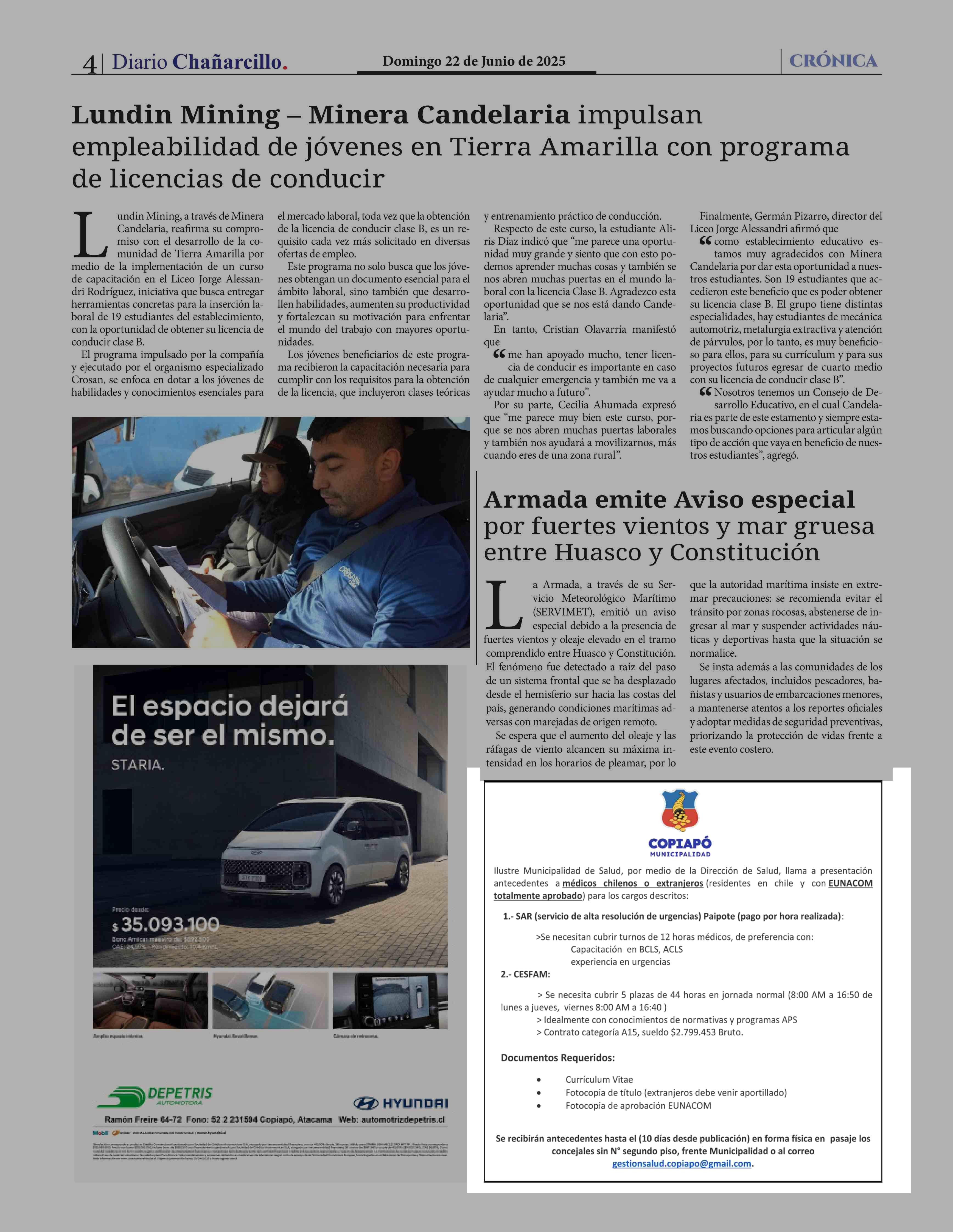 AVISO LICITACIONES: MUNICIPALIDAD DE COPIAPÓ 22-06-2025 Diario Chañarcillo |
