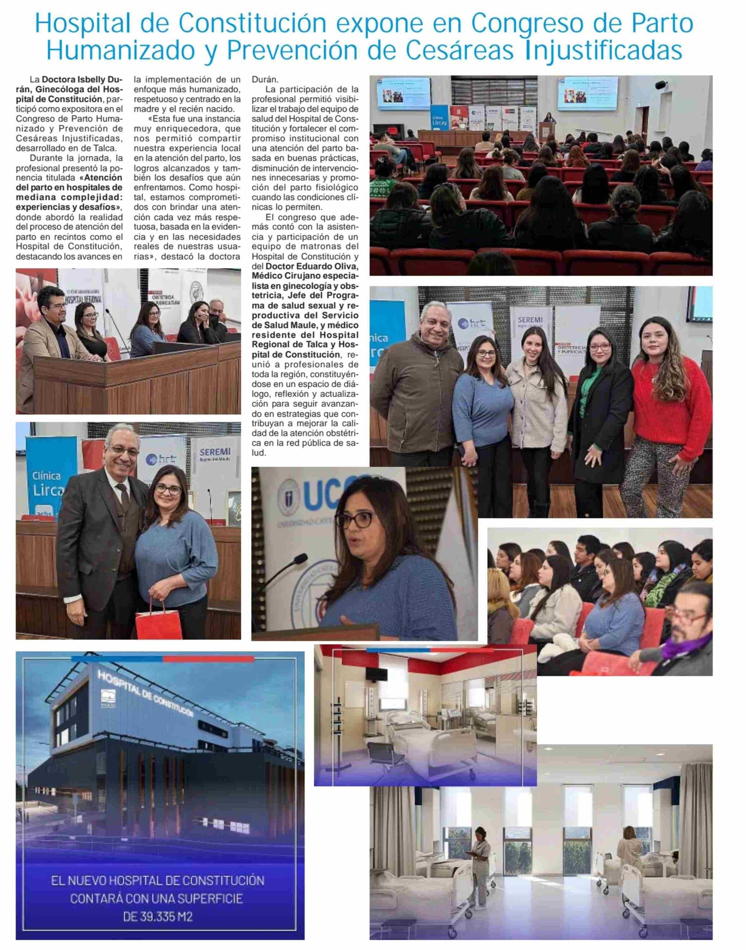 Hospital de Constitución expone en Congreso de Parto Humanizado y Prevención de Cesáreas Injustificadas 14-06-2025 Maule Hoy |