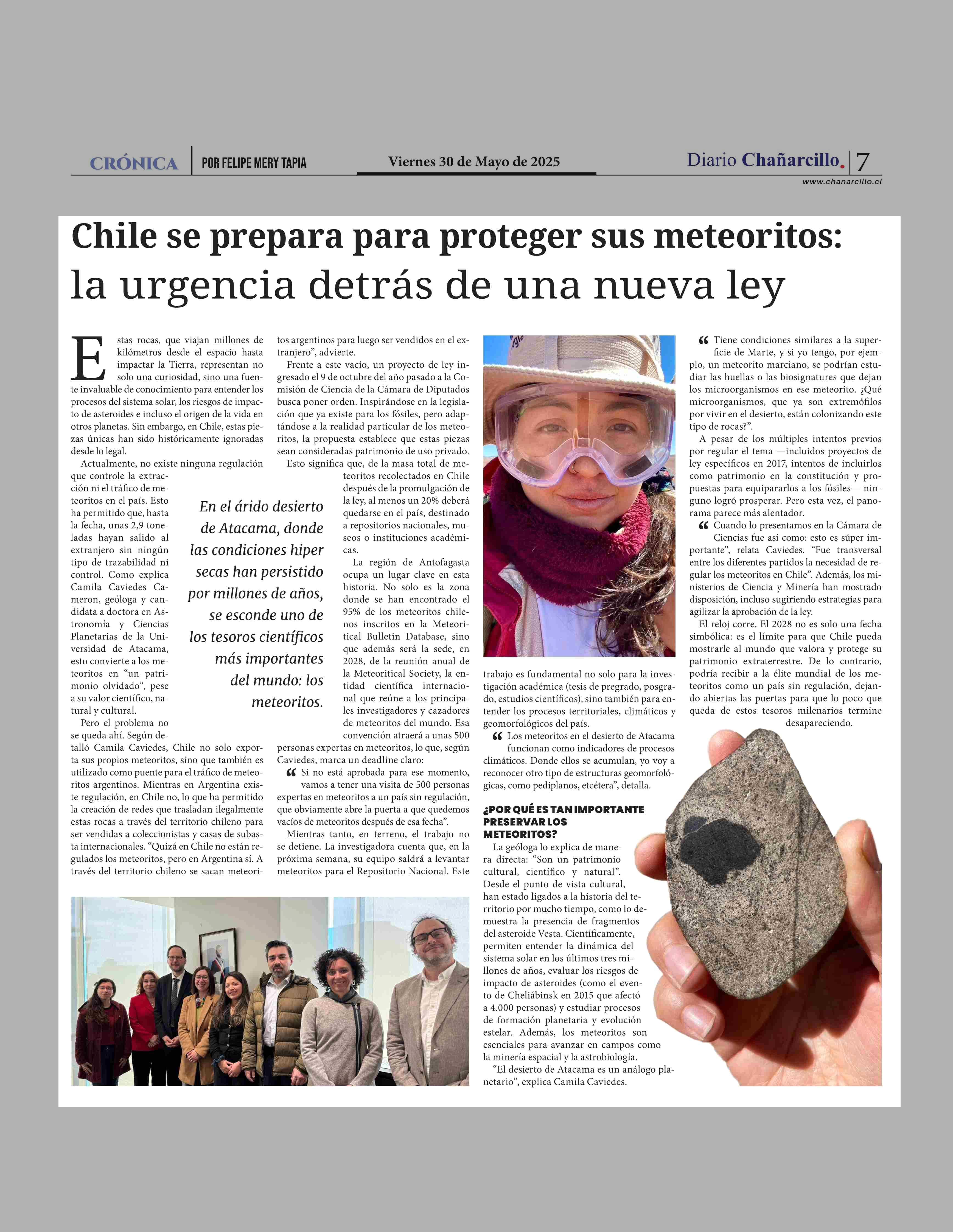 Chile se prepara para proteger sus meteoritos: la urgencia detrás de una nueva ley 30-05-2025 Diario Chañarcillo |