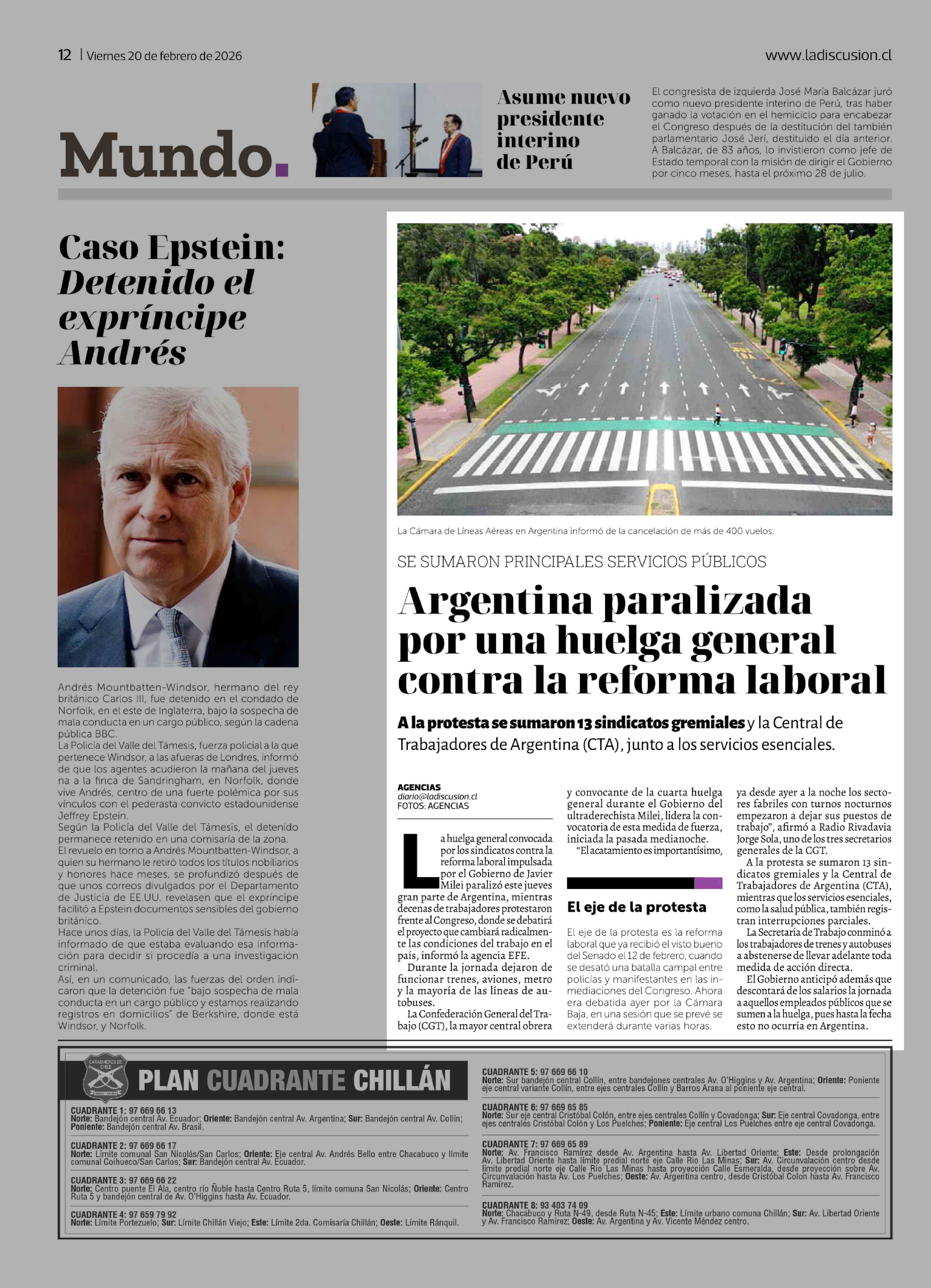 Argentina paralizada por una huelga general contra la reforma laboral 20-02-2026 La Discusión |