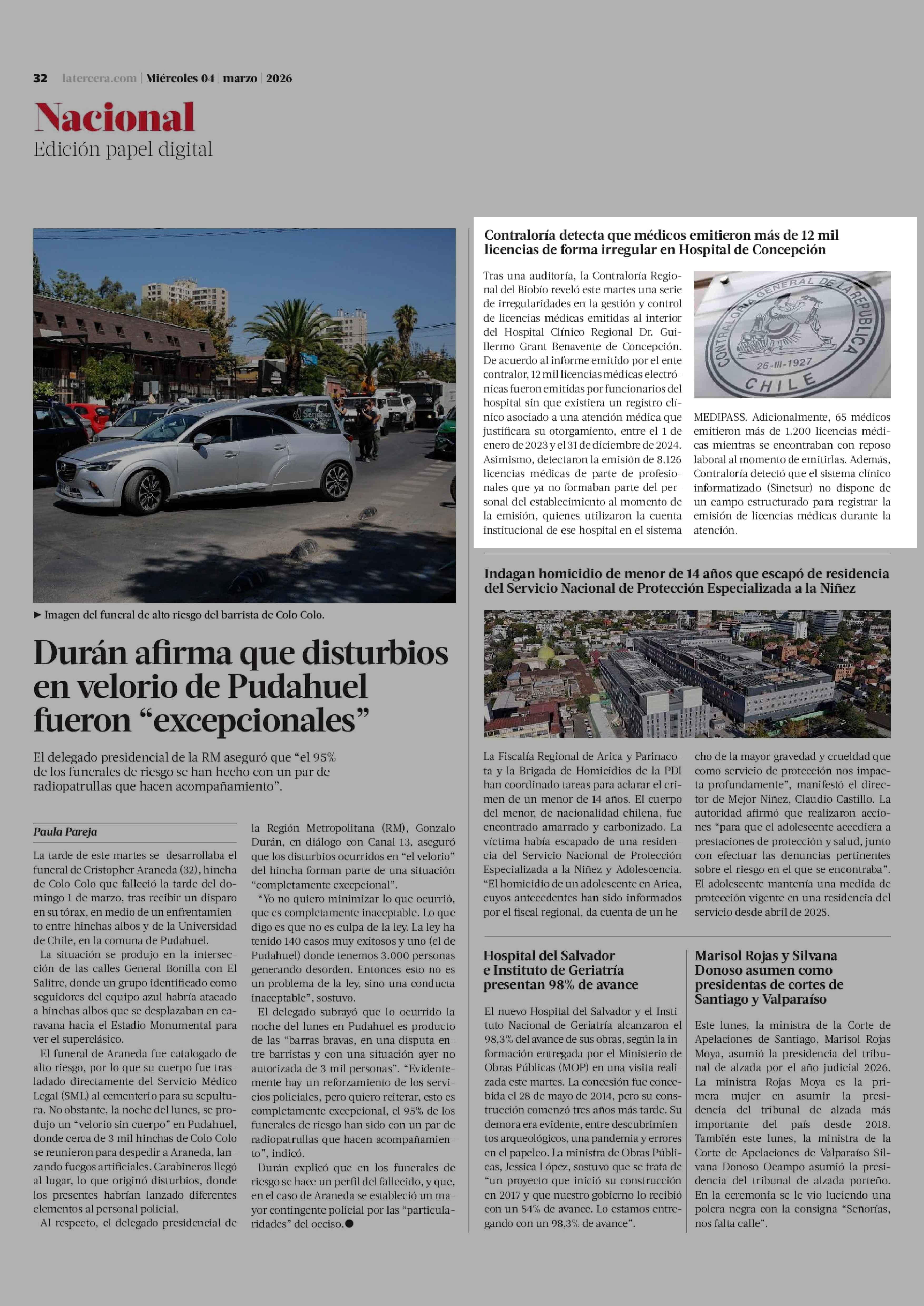 Fuente: La Tercera (La Tercera) Página(s): 32
