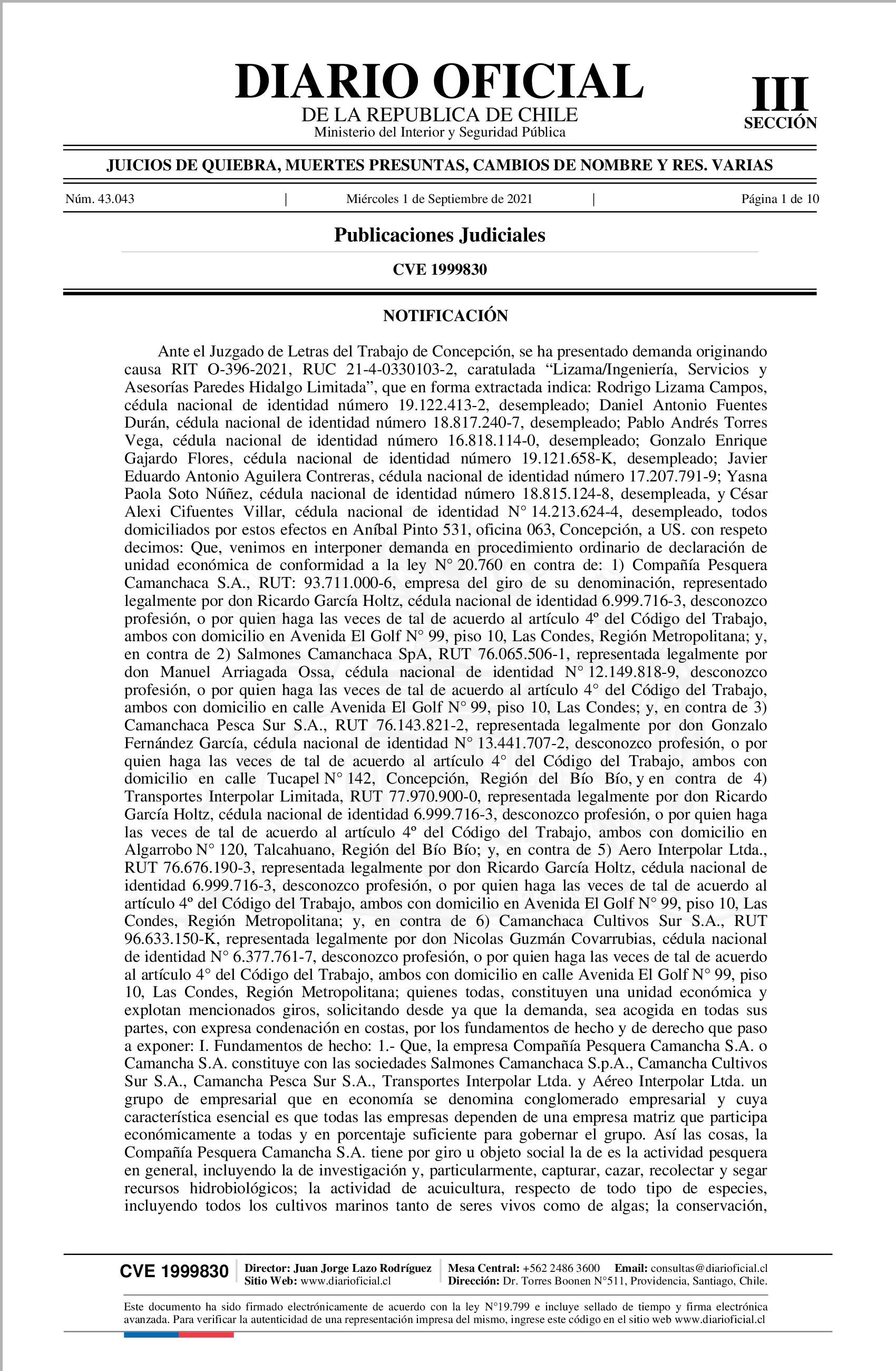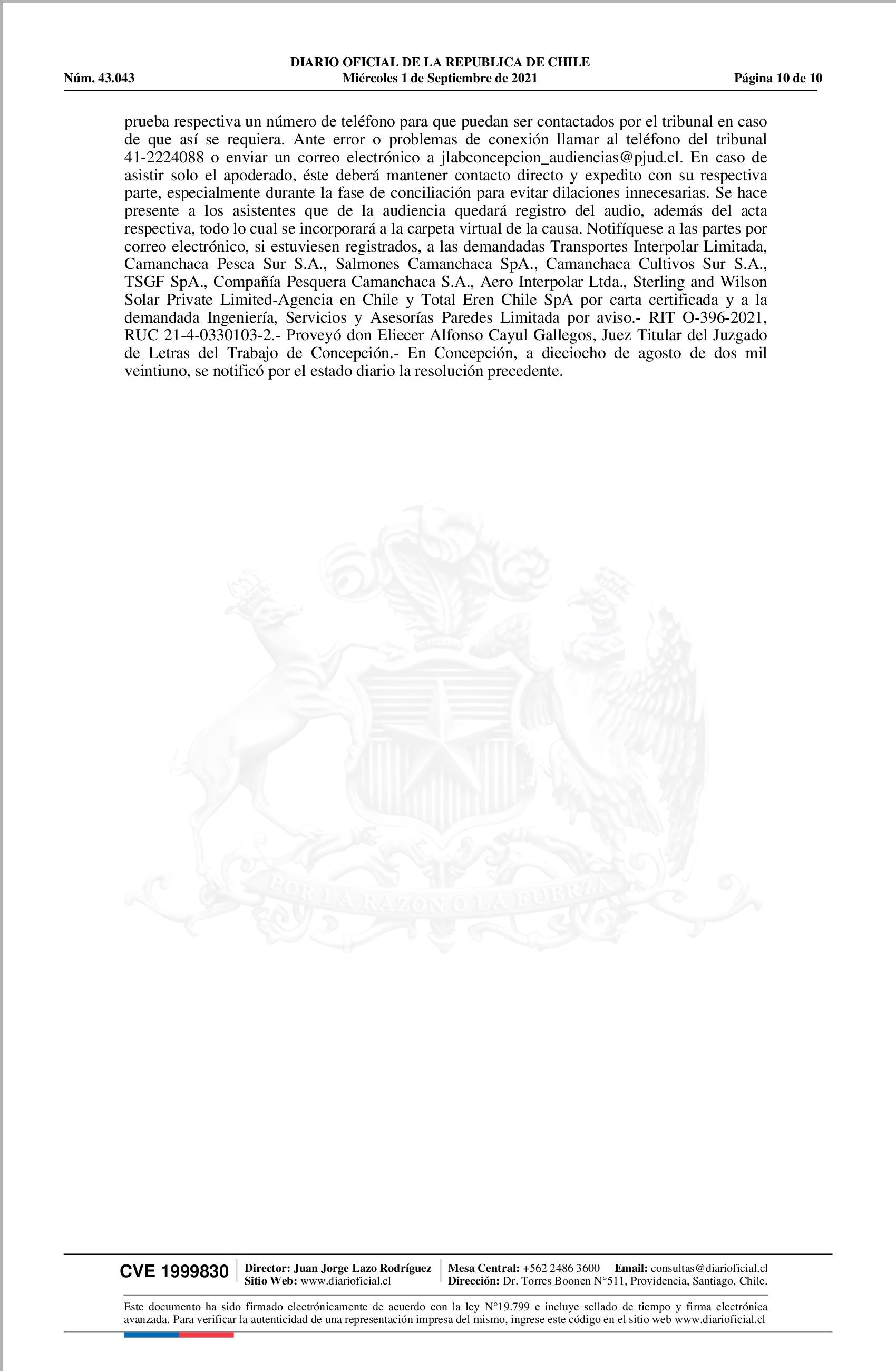 Notificación 01-09-2021 Diario Oficial Edición Electrónica |