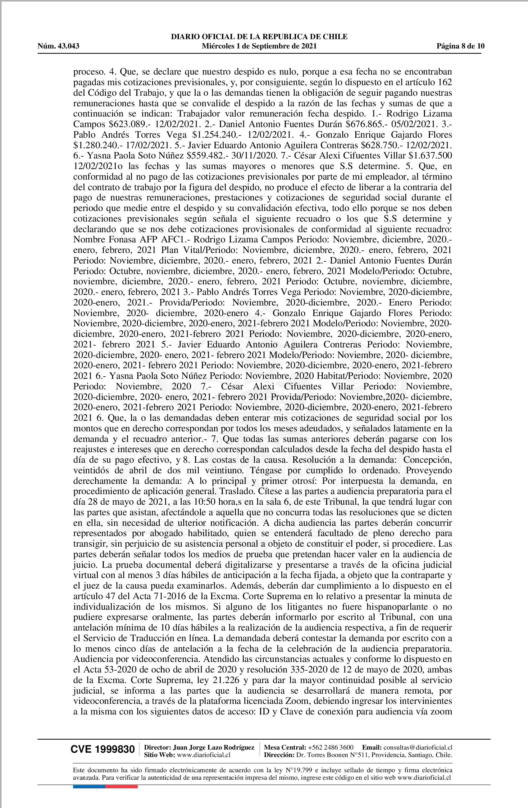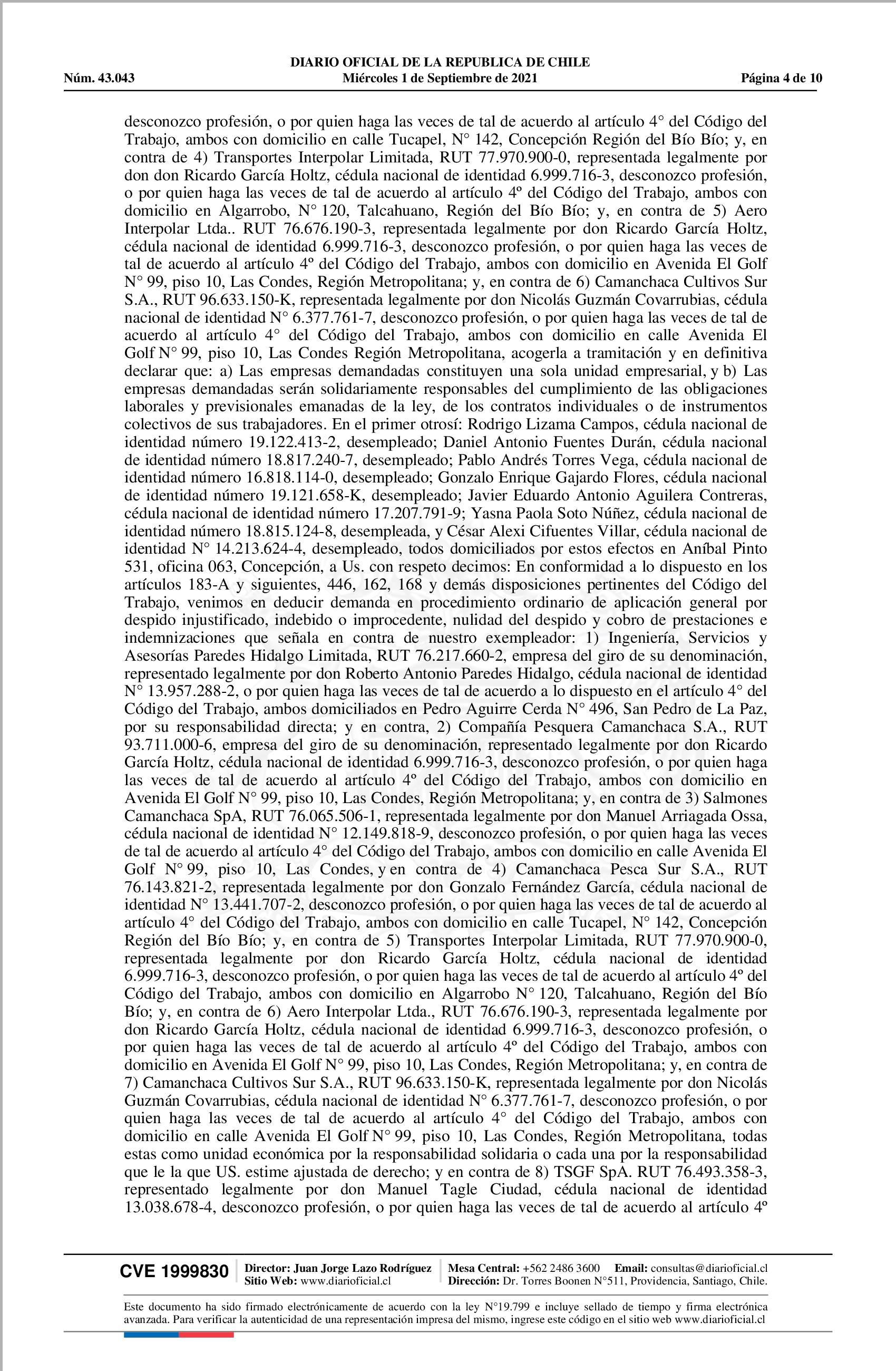 | Fuente: | Diario Oficial Edición Electrónica (Diario Oficial de Chile - 3 Public. Judiciales) | Página(s): | 1033-1042 |