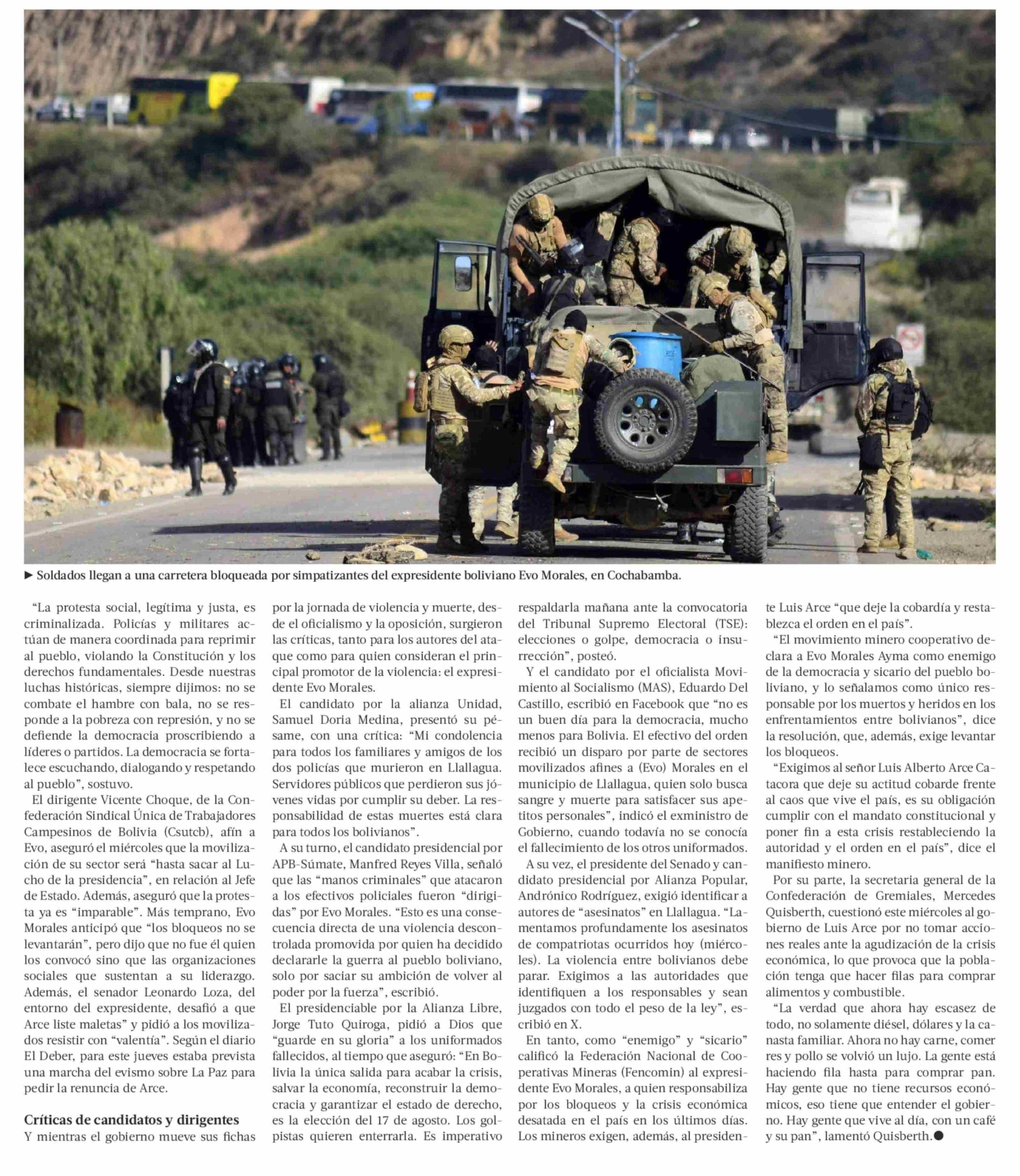 | Título: | Bolivia: muerte de cuatro policías y un civil y bloqueos carreteros aumentan presión sobre Evo Morales y Luis Arce |