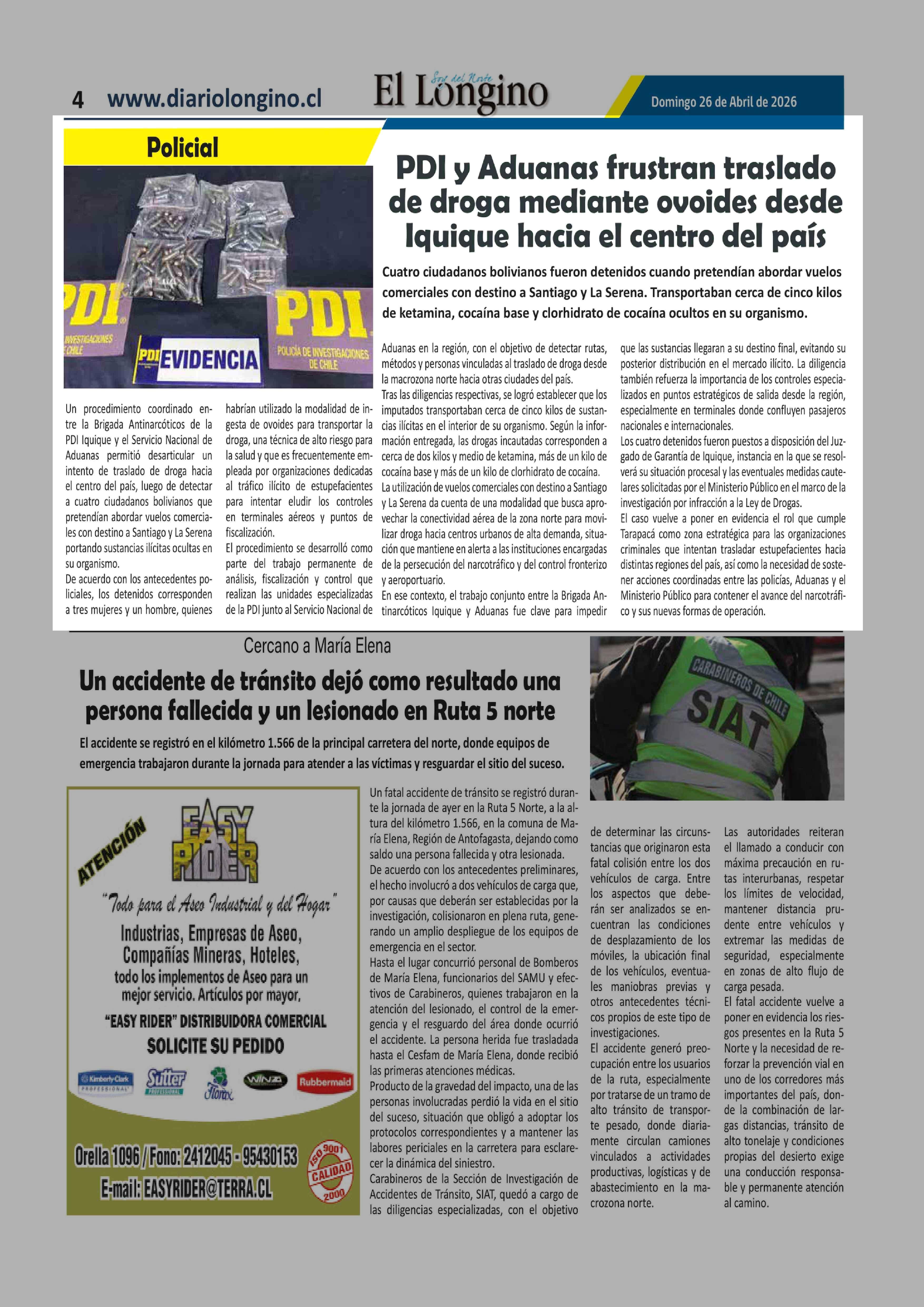 Fecha: 26-04-2026 Sector: Noticia general Región: Región de Tarapacá
