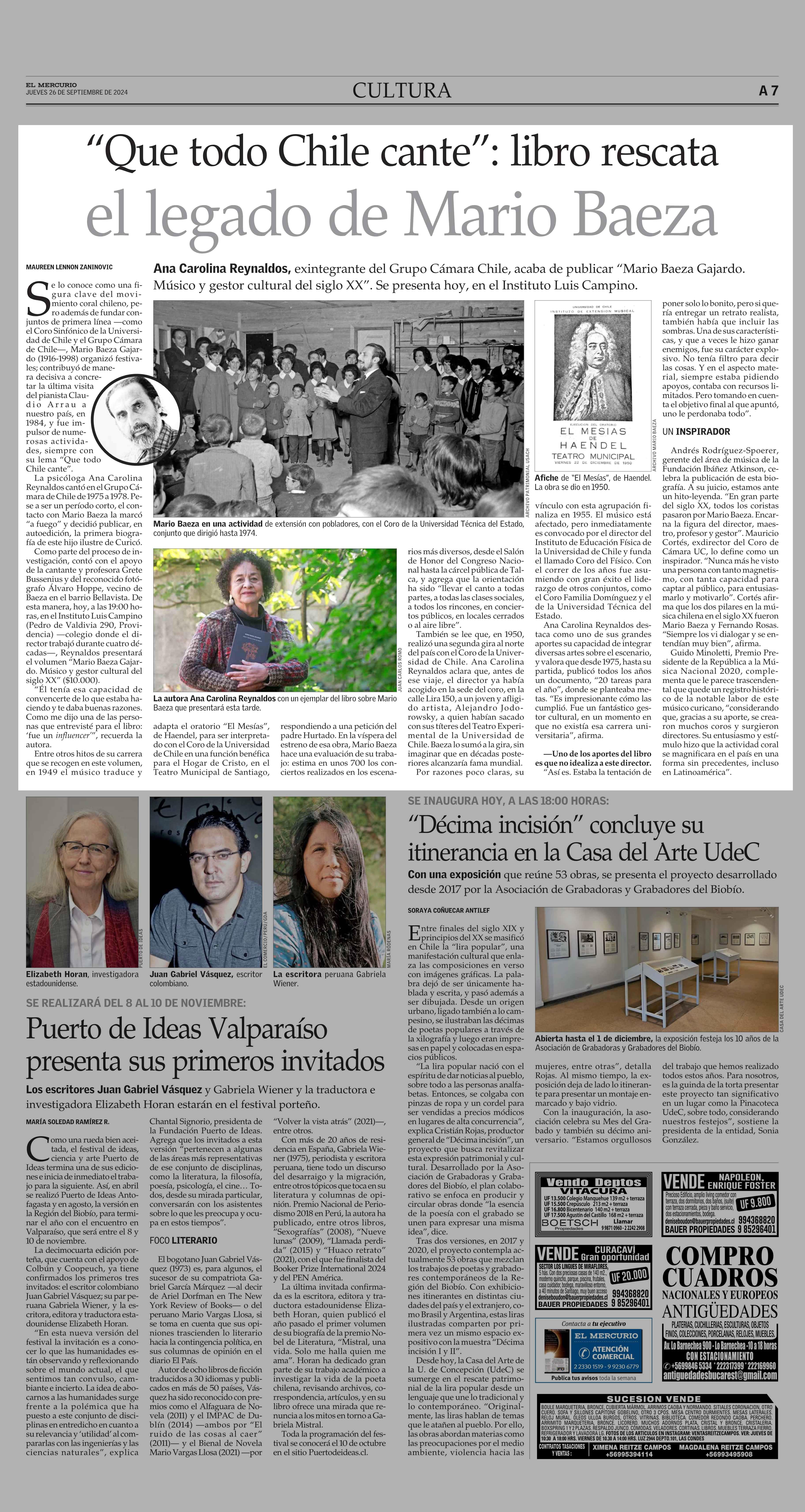 “Que todo Chile cante”: libro rescata el legado de Mario Baeza 26-09-2024 El Mercurio |