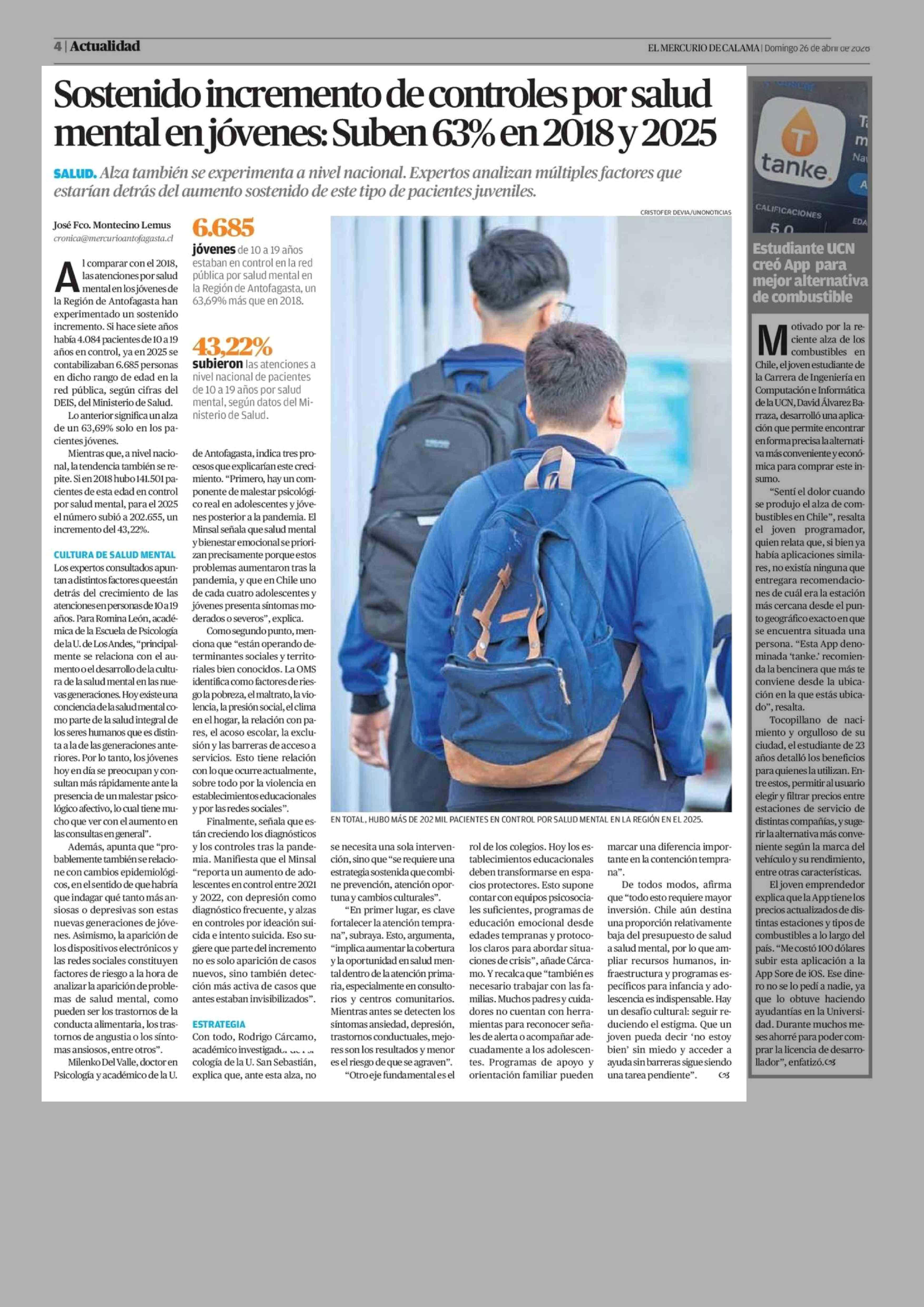 Sostenido incremento de controles por salud mental en jóvenes: Suben 63% en 2018 y 2025