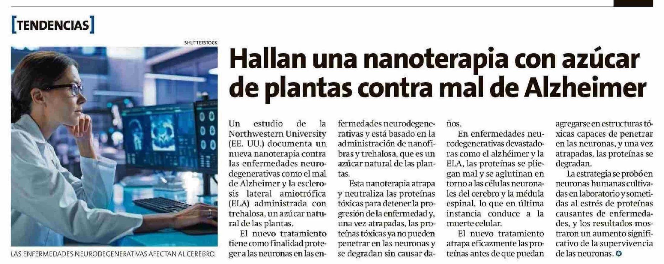 | Título: | Hallan una nanoterapia con azúcar 4 de plantas contra mal de Alzheimer |