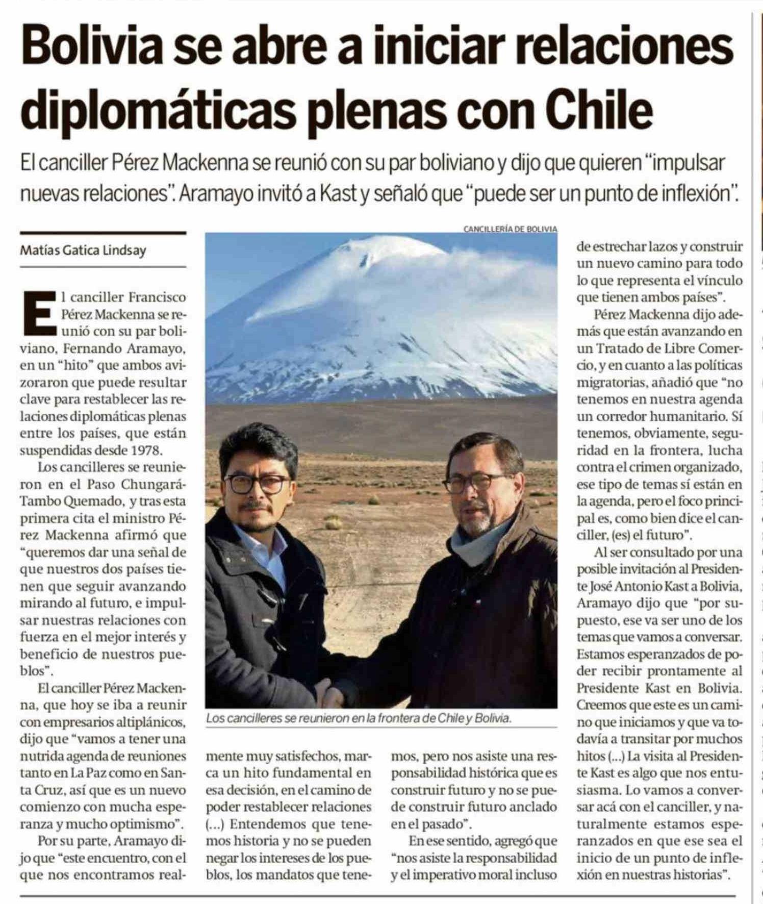 | Título: | Bolivia se abre a iniciar relaciones diplomáticas plenas con Chile |