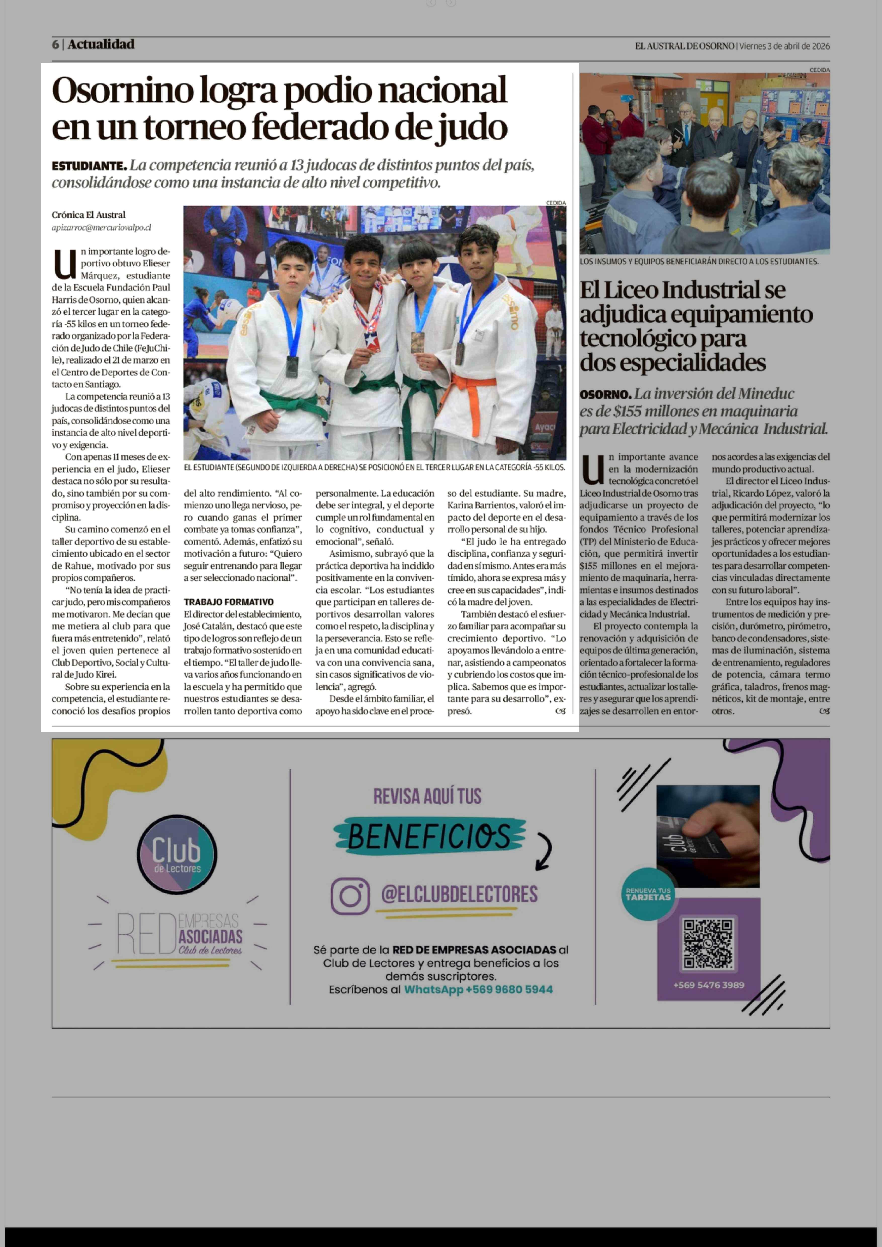 Osornino logra podio nacional en un torneo federado de judo 03-04-2026 El Austral de Osorno |