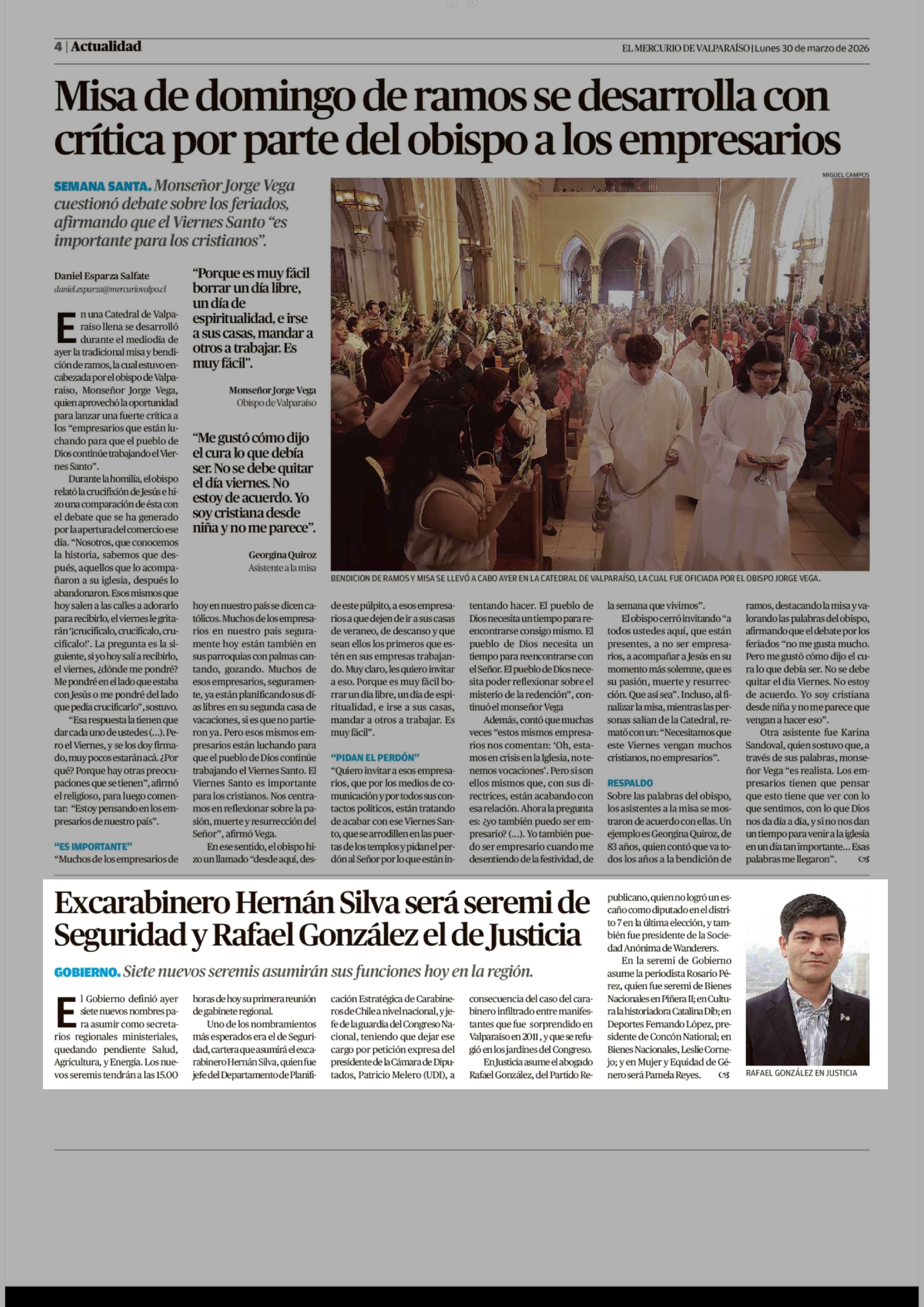 Excarabinero Hernán Silva será seremi de Seguridad y Rafael González el de Justicia 30-03-2026 El Mercurio de Valparaíso |