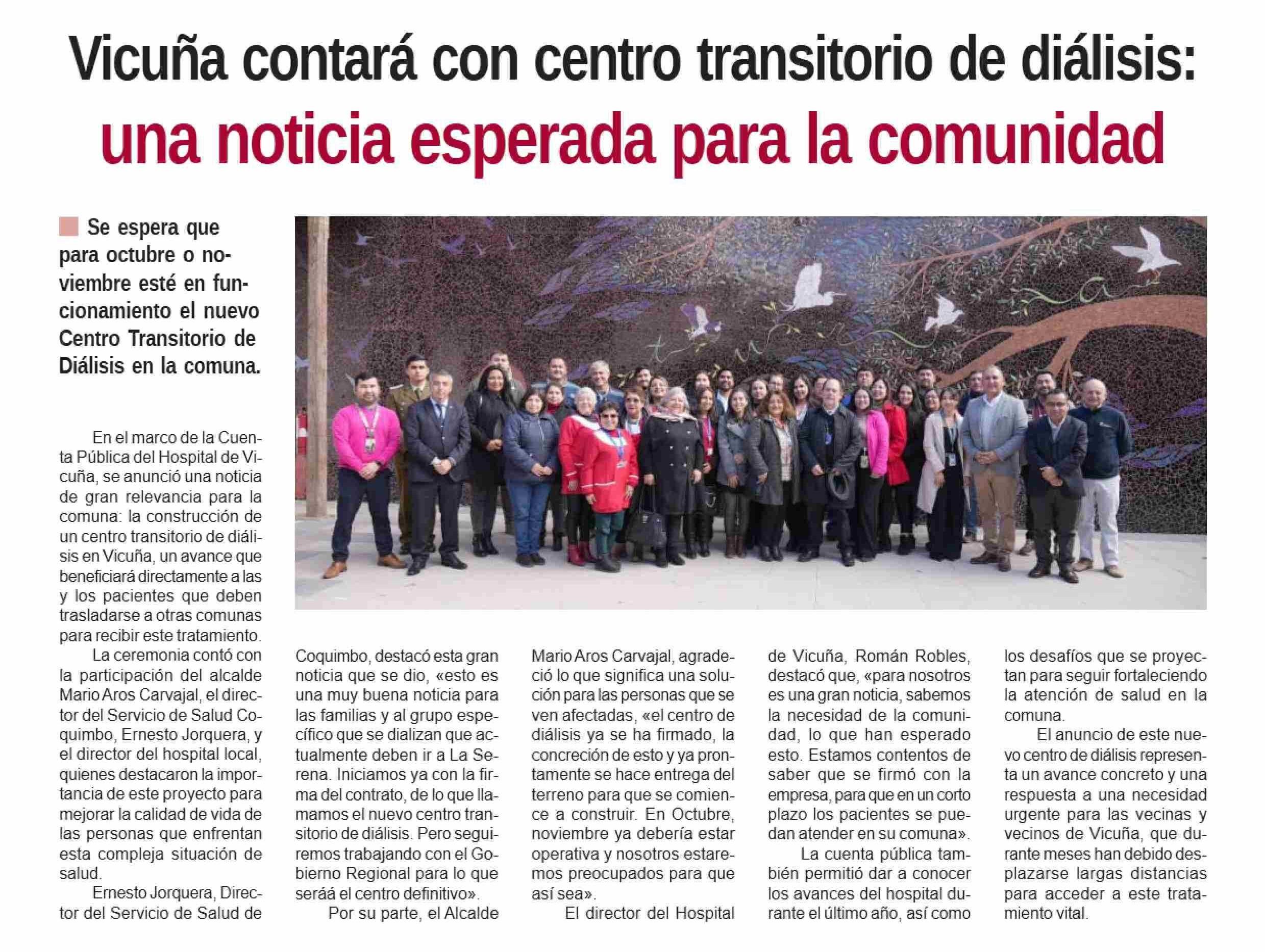 Vicuña contará con centro transitorio de diálisis: una noticia esperada para la comunidad 18-06-2025 Diario la Región |
