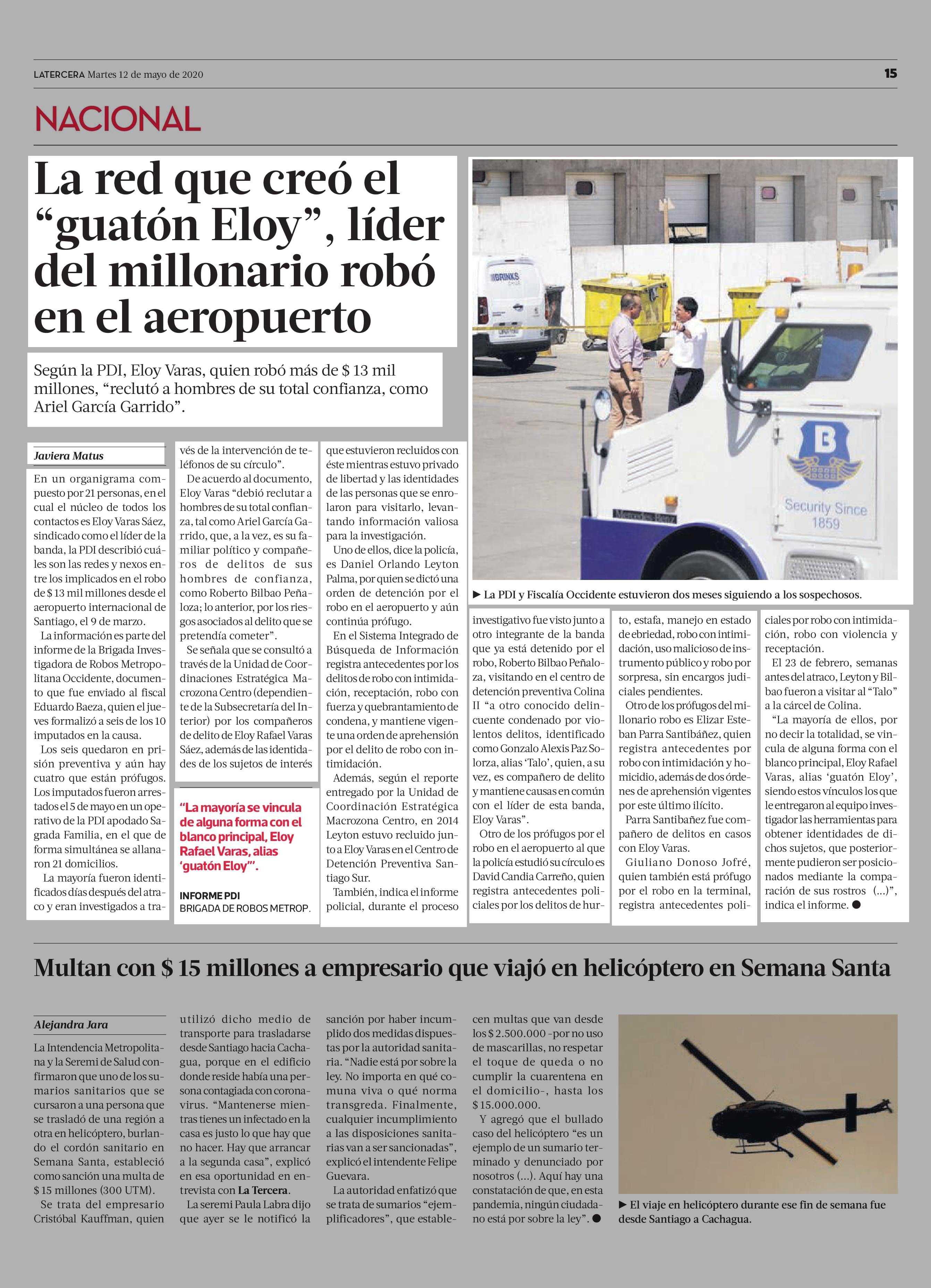 La red que creó el “guatón Eloy”, líder del millonario robó en el aeropuerto 12-05-2020 La Tercera |