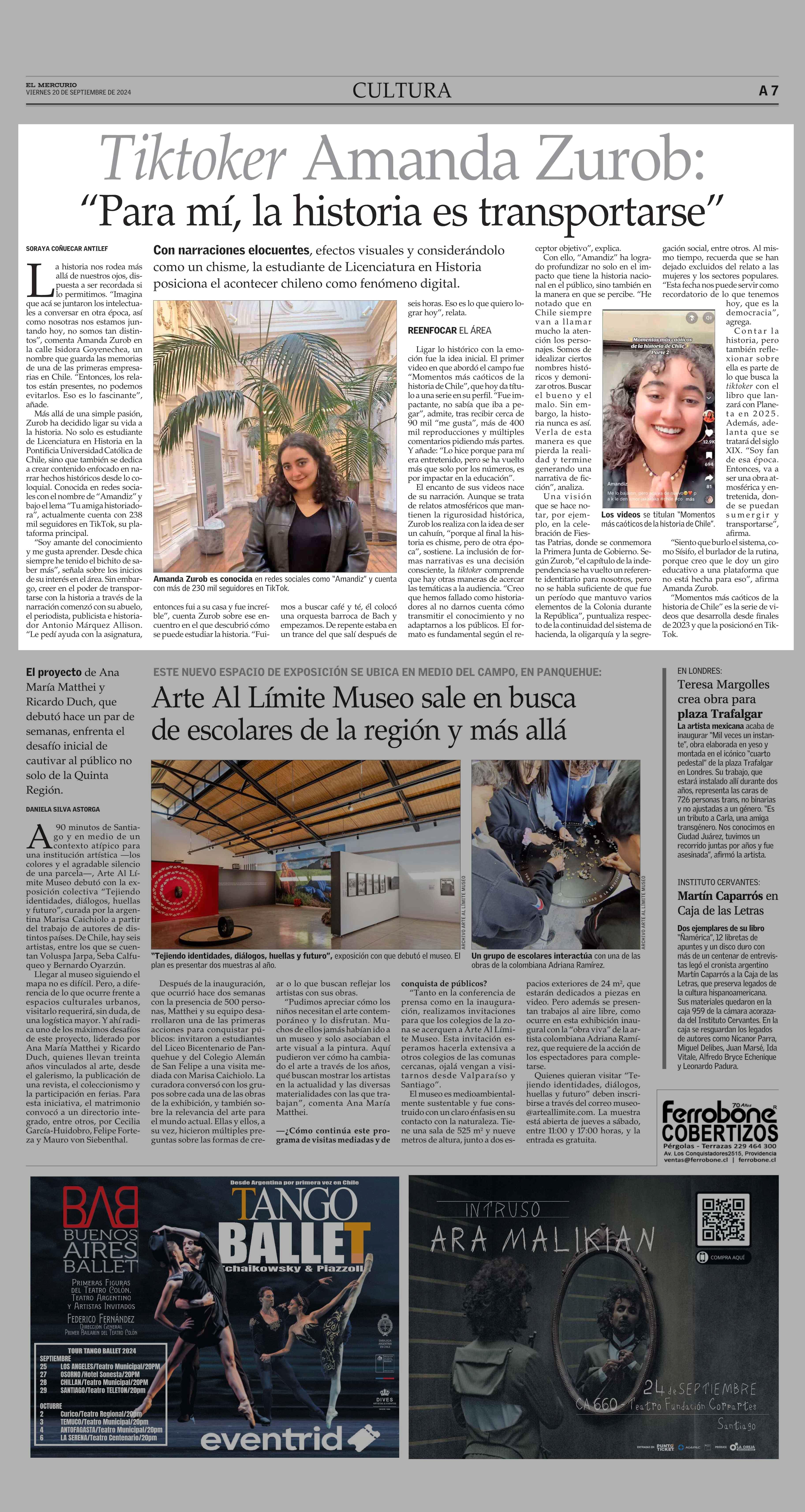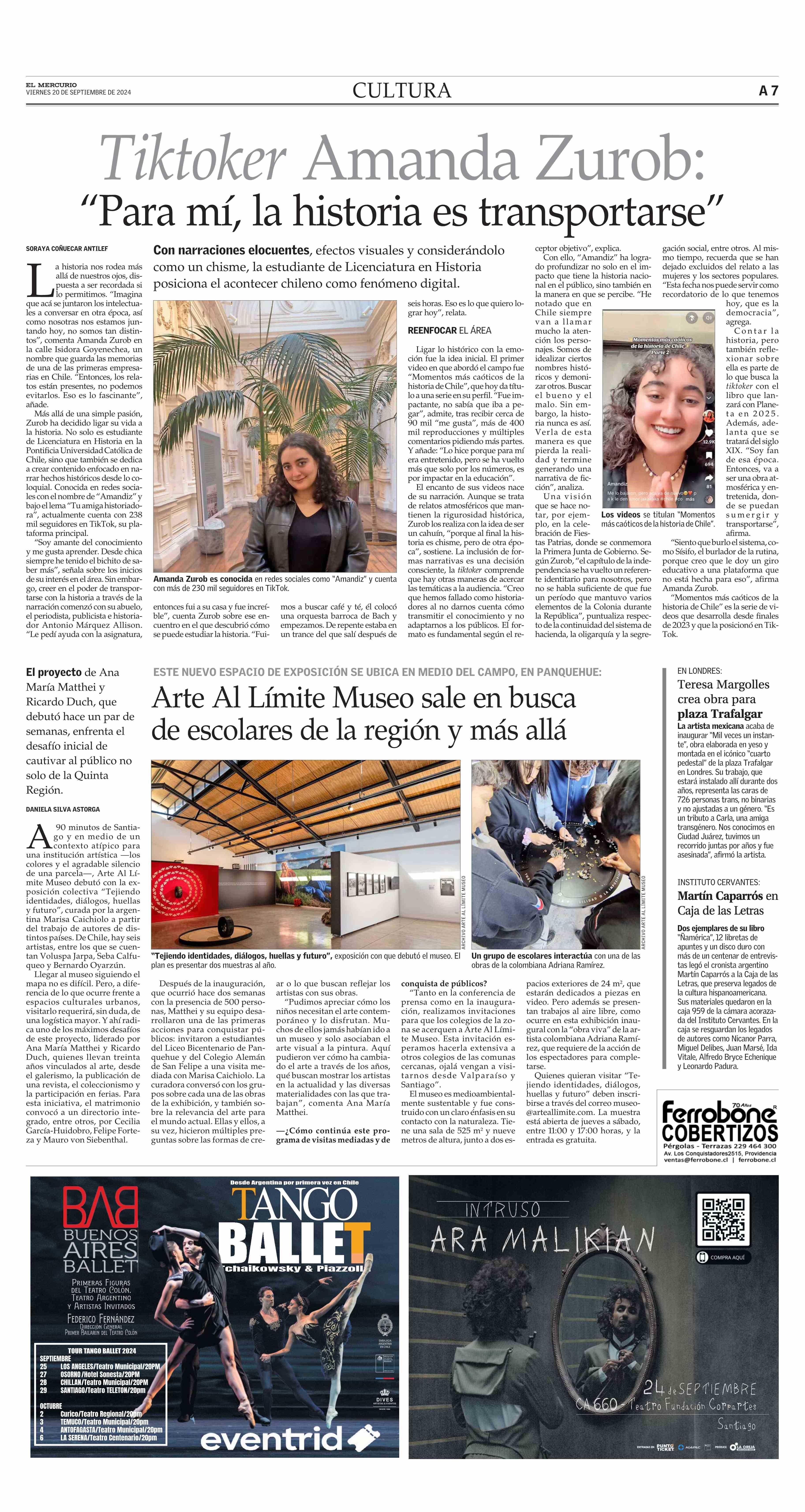 Tiktoker Amanda Zurob: “Para mí, la historia es transportarse” 20-09-2024 El Mercurio |