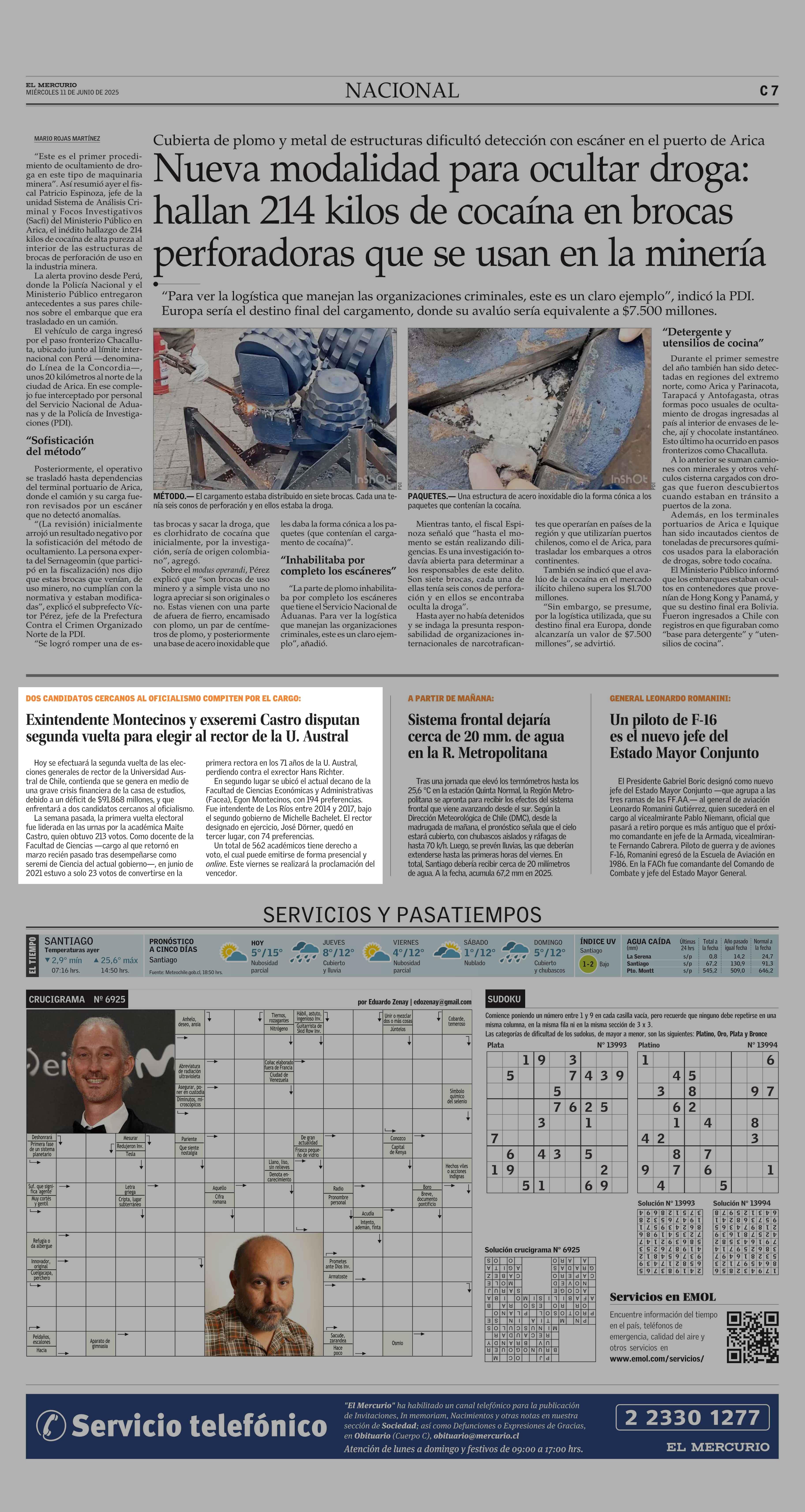 Exintendente Montecinos y exseremi Castro disputan segunda vuelta para elegir al rector de la U. Austral 11-06-2025 El Mercurio |
