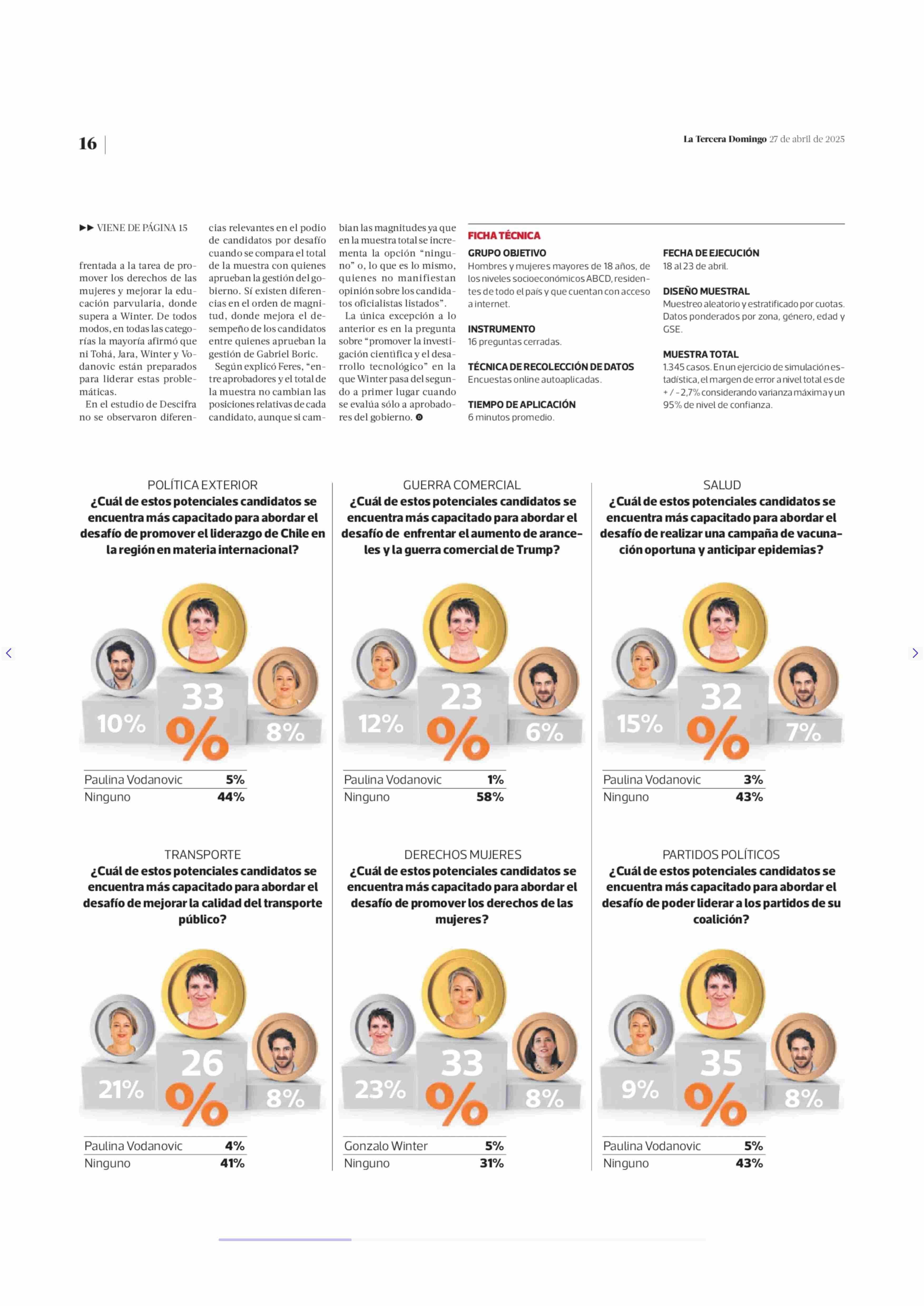 | Título: | Encuesta Descifra Las cualidades de las cartas del oficialismo en la carrera a La Moneda |