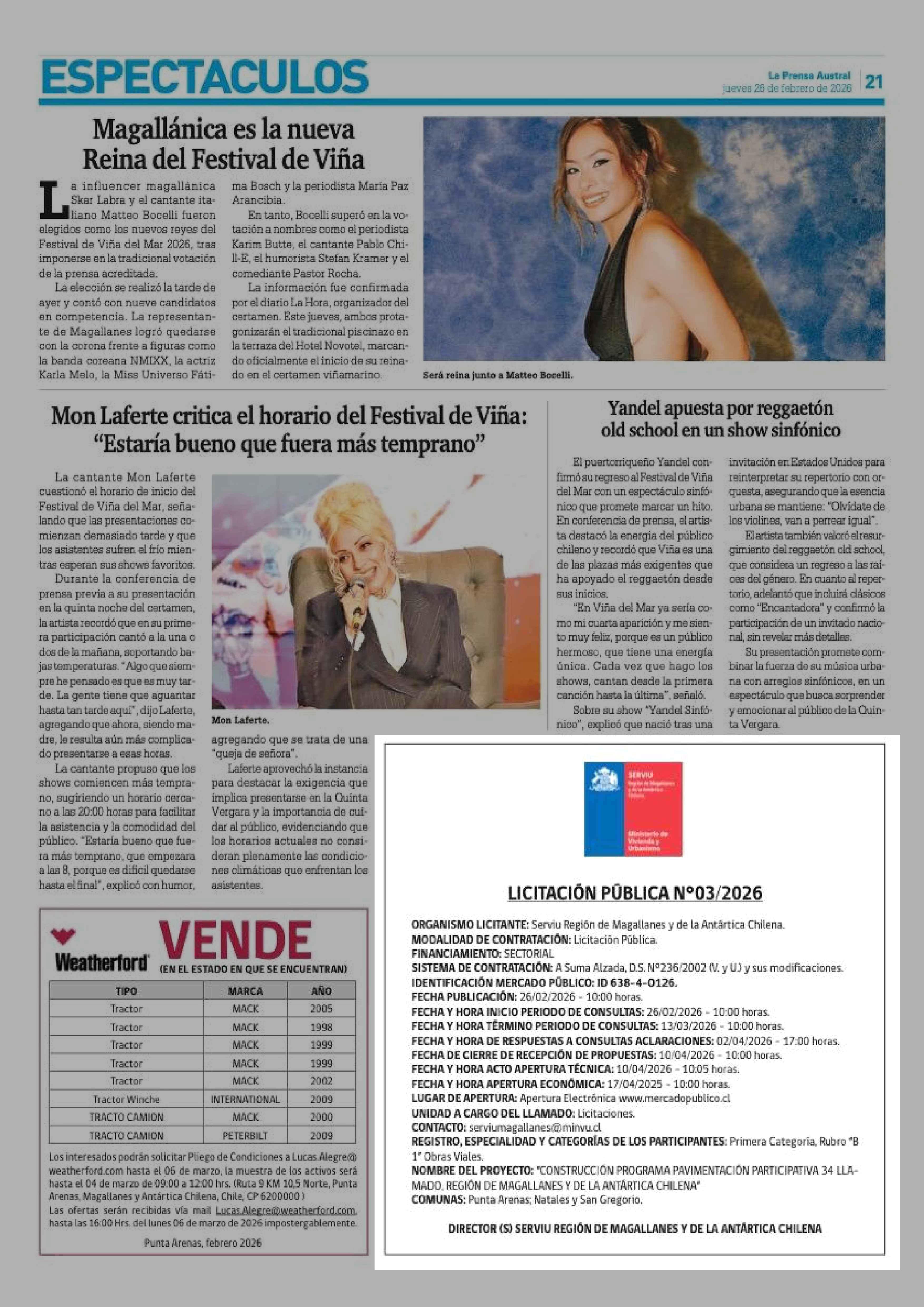 LICITACIÓN PÚBLICA Nº03/2026 26-02-2026 La Prensa Austral |