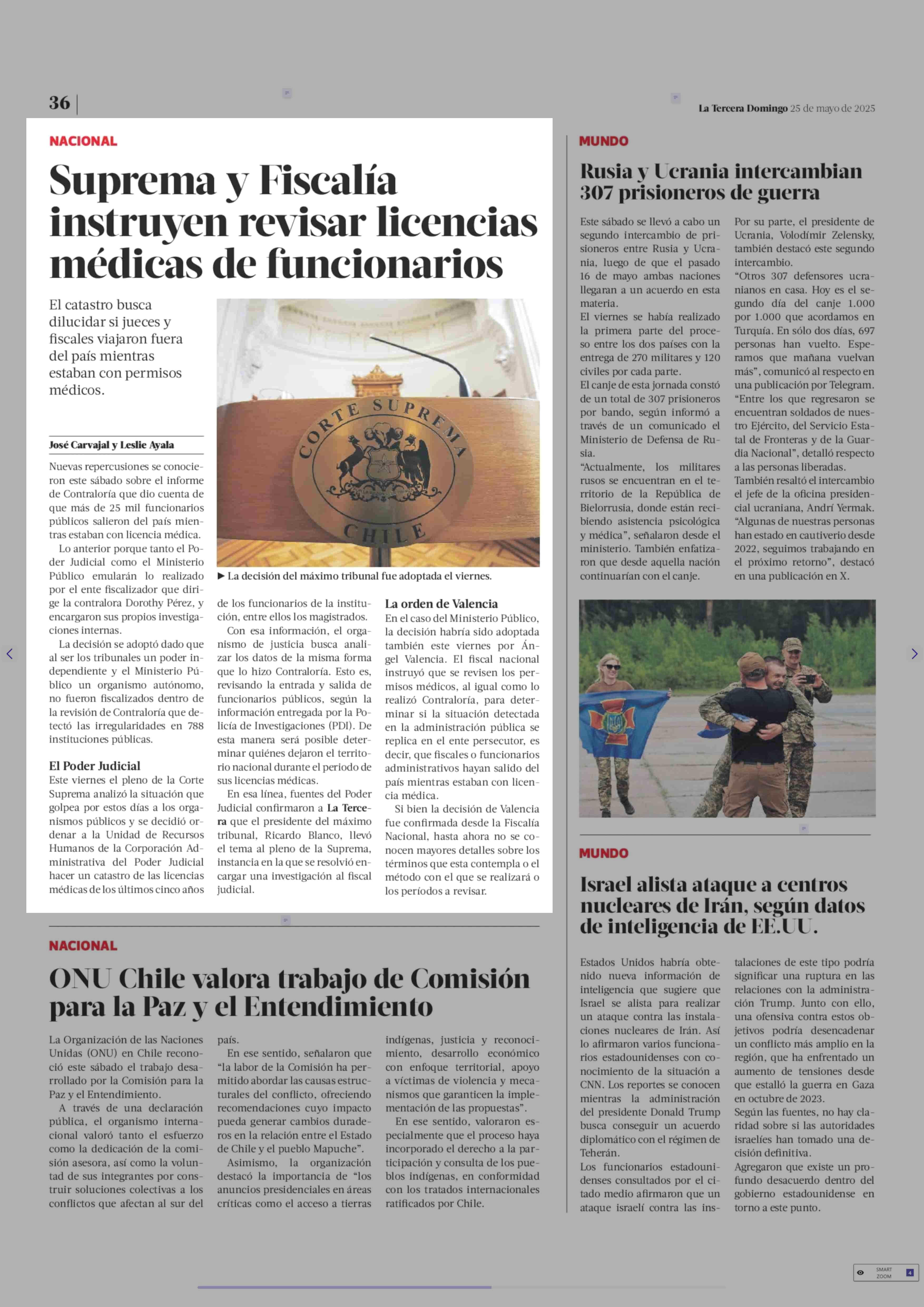 Suprema y Fiscalía instruyen revisar licencias 25-05-2025 La Tercera |