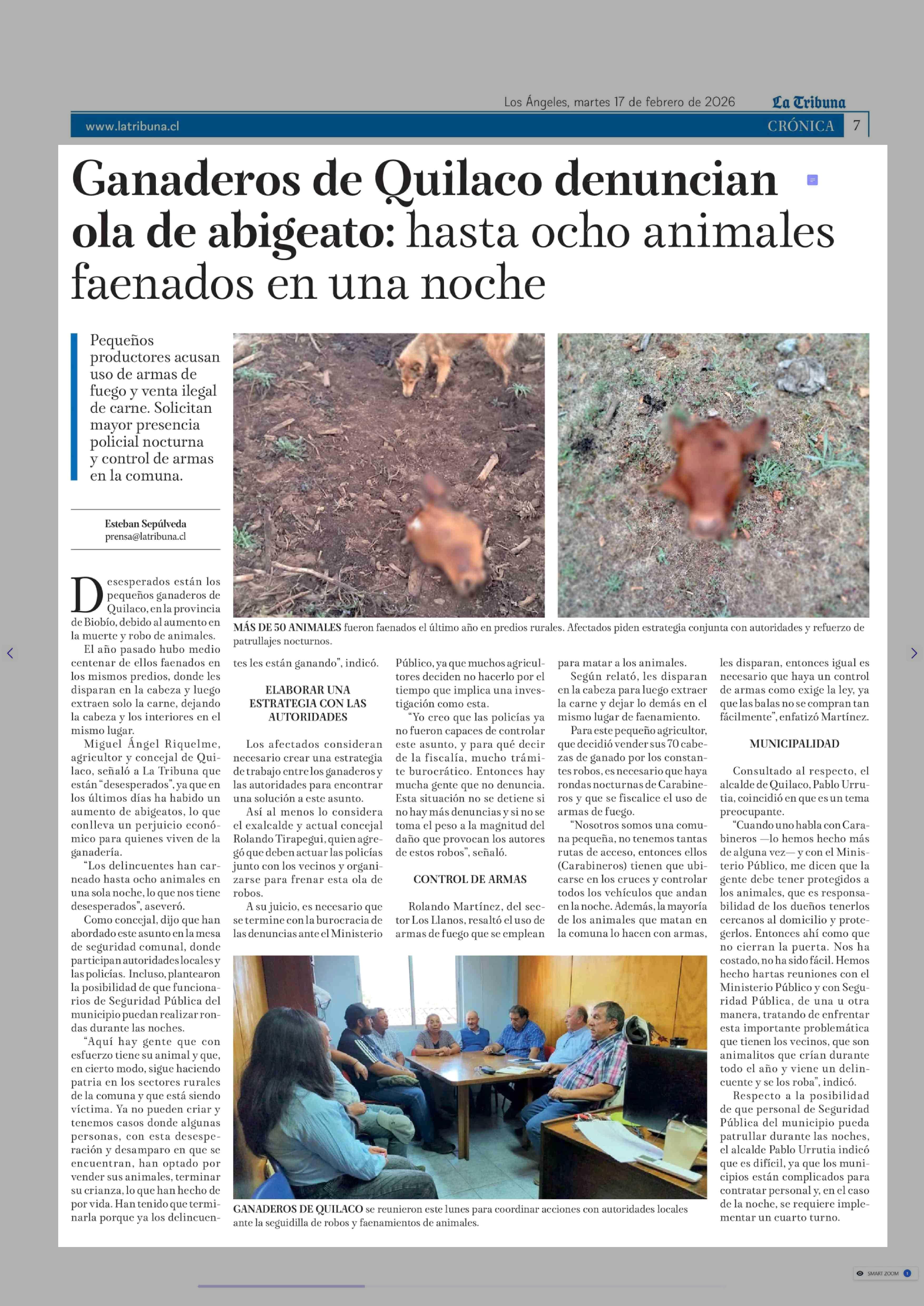 Título: Ganaderos de Quilaco denuncian ola de abigeato: hasta ocho animales faenados en una noche