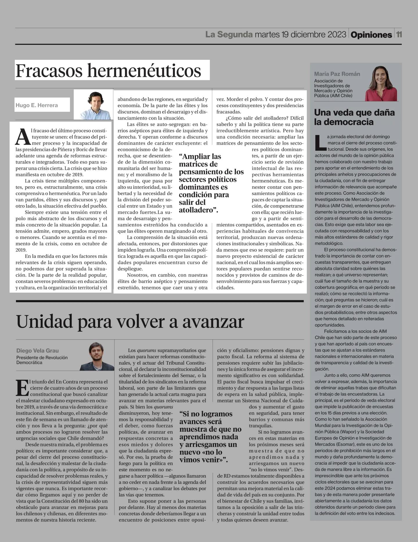 Fracasos hermenéuticos 19-12-2023 La Segunda |