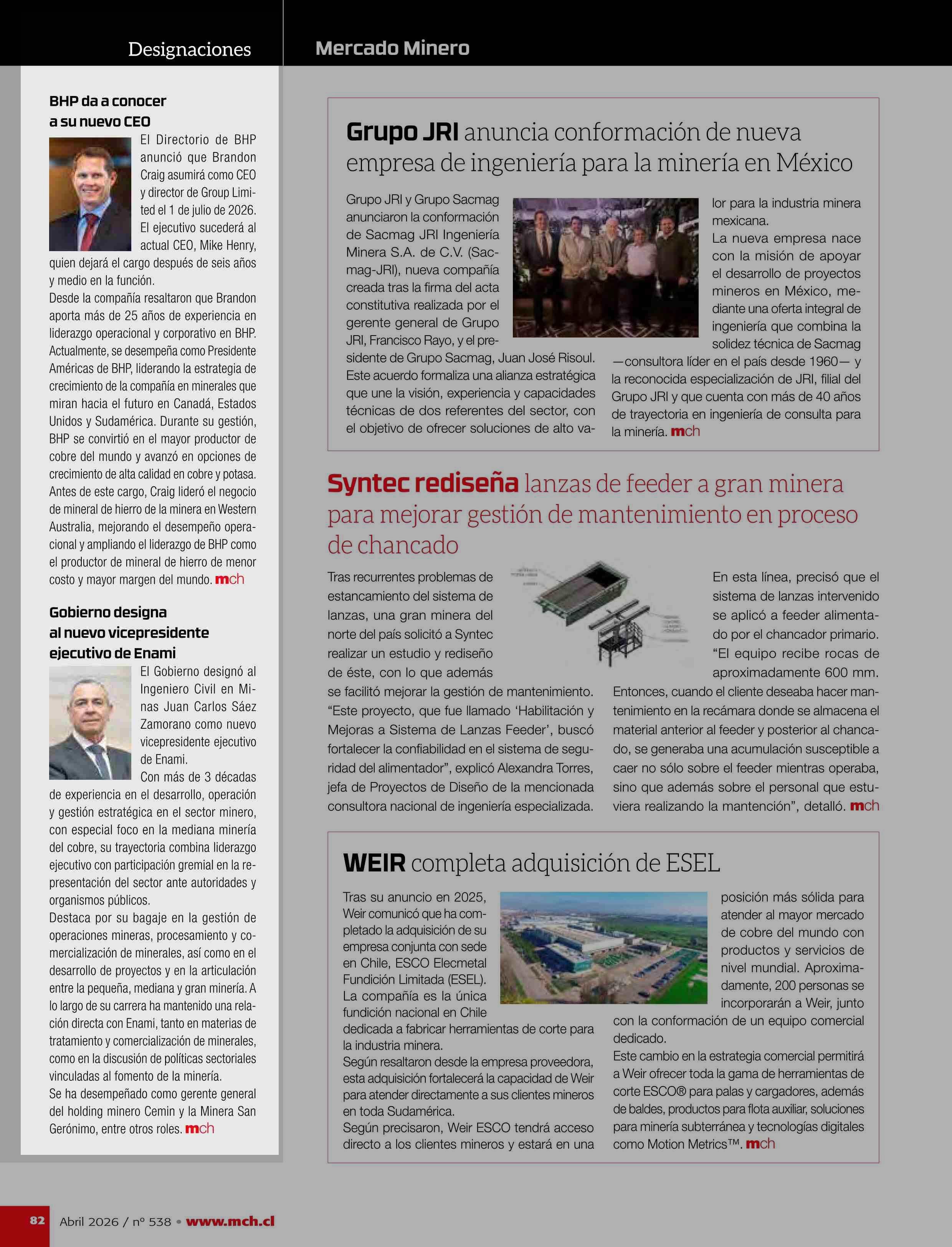 Designaciones 23-04-2026 Revista Minería Chilena |