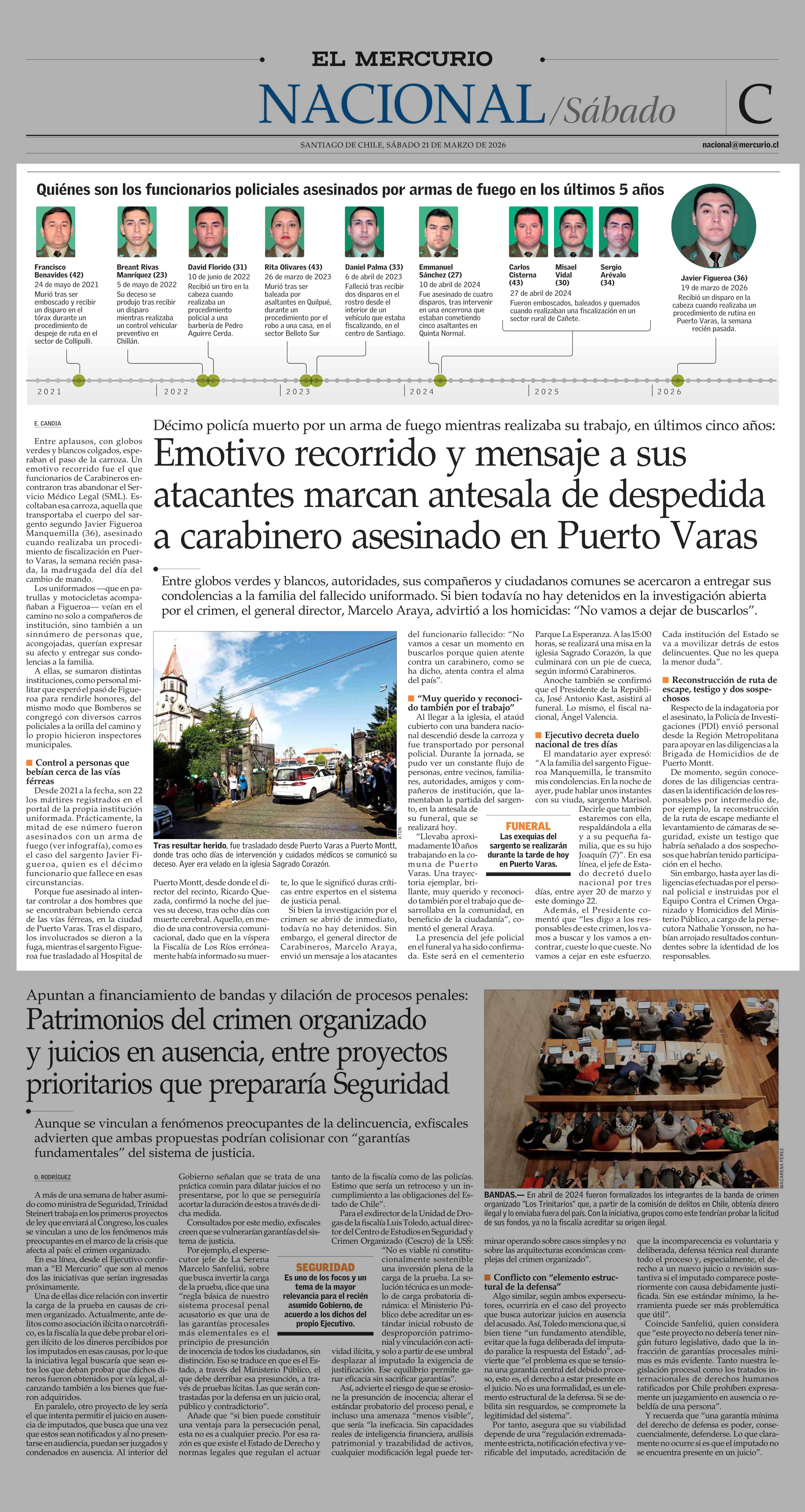 Emotivo recorrido y mensaje a sus atacantes marcan antesala de despedida a carabinero asesinado en Puerto Varas 21-03-2026 El Mercurio |