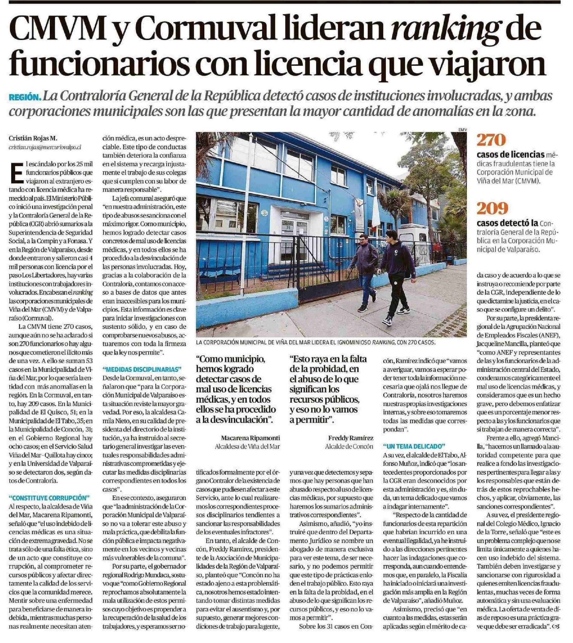 CMVM y Cormuval lideran ranking de funcionarios con licencia que viajaron 23-05-2025 El Mercurio de Valparaíso |