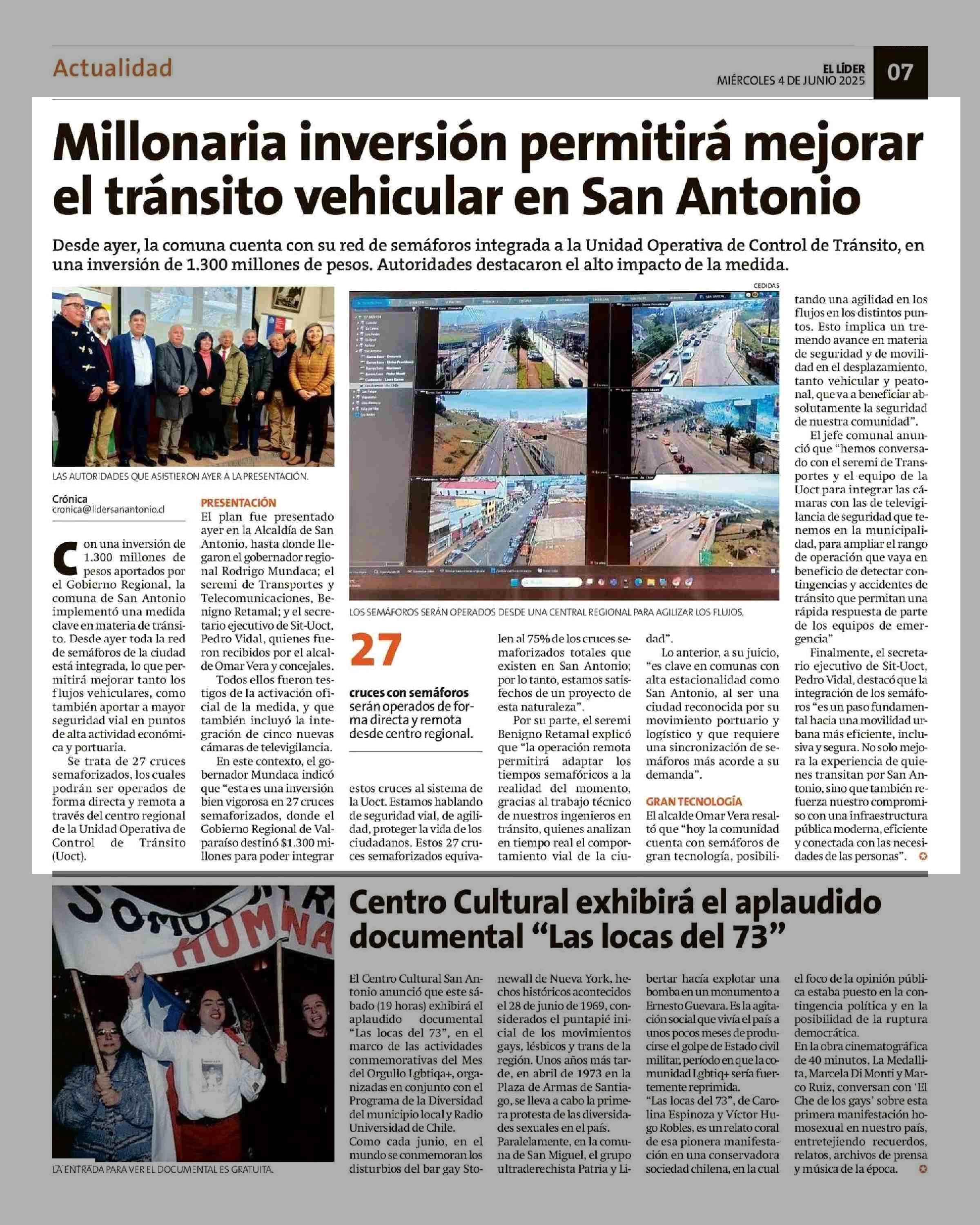 Millonaria inversión permitirá mejorar el tránsito vehicular en San Antonio 04-06-2025 El Líder |