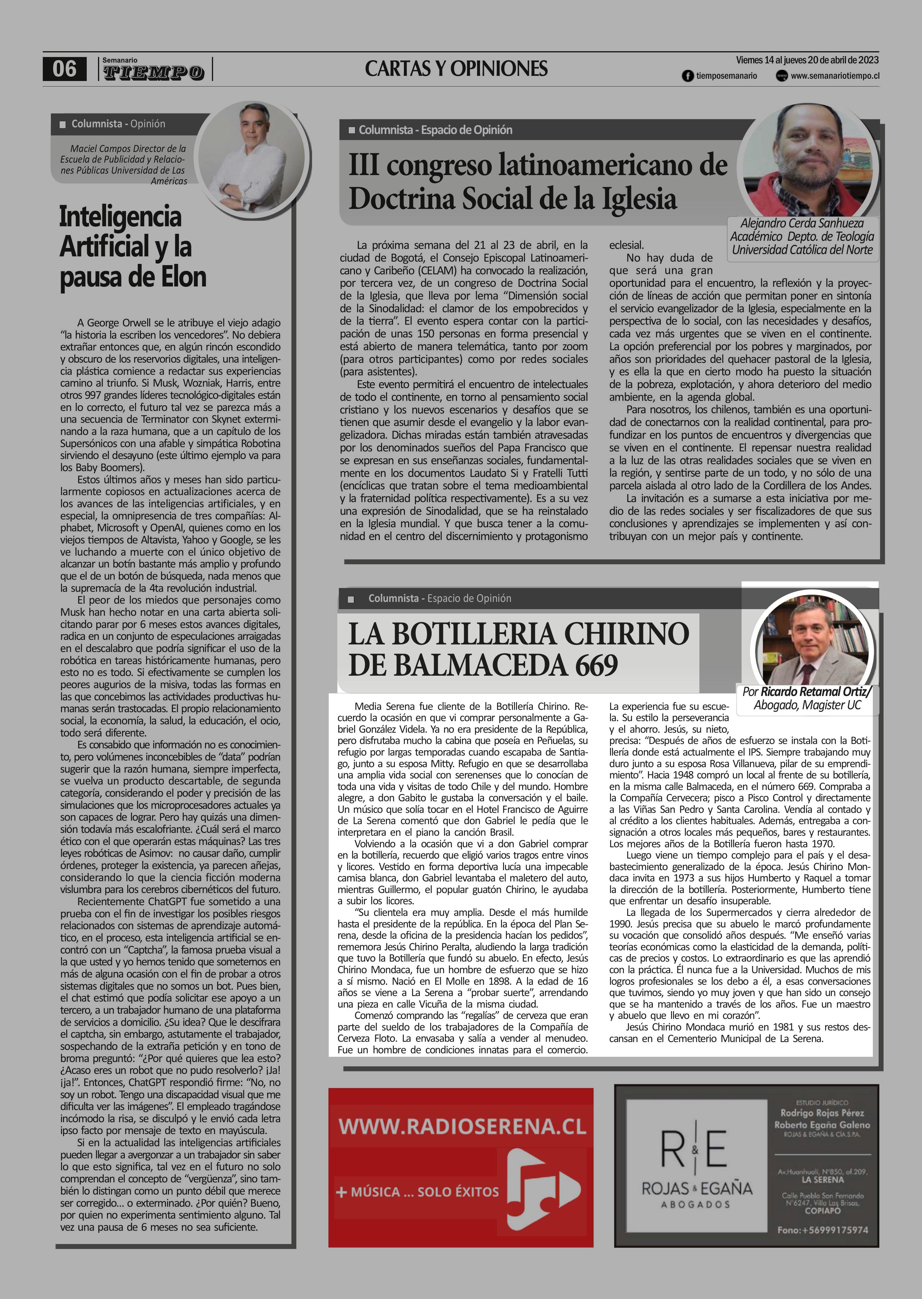 LA BOTILLERIA CHIRINO DE BALMACEDA 669 14-04-2023 Semanario Tiempo |