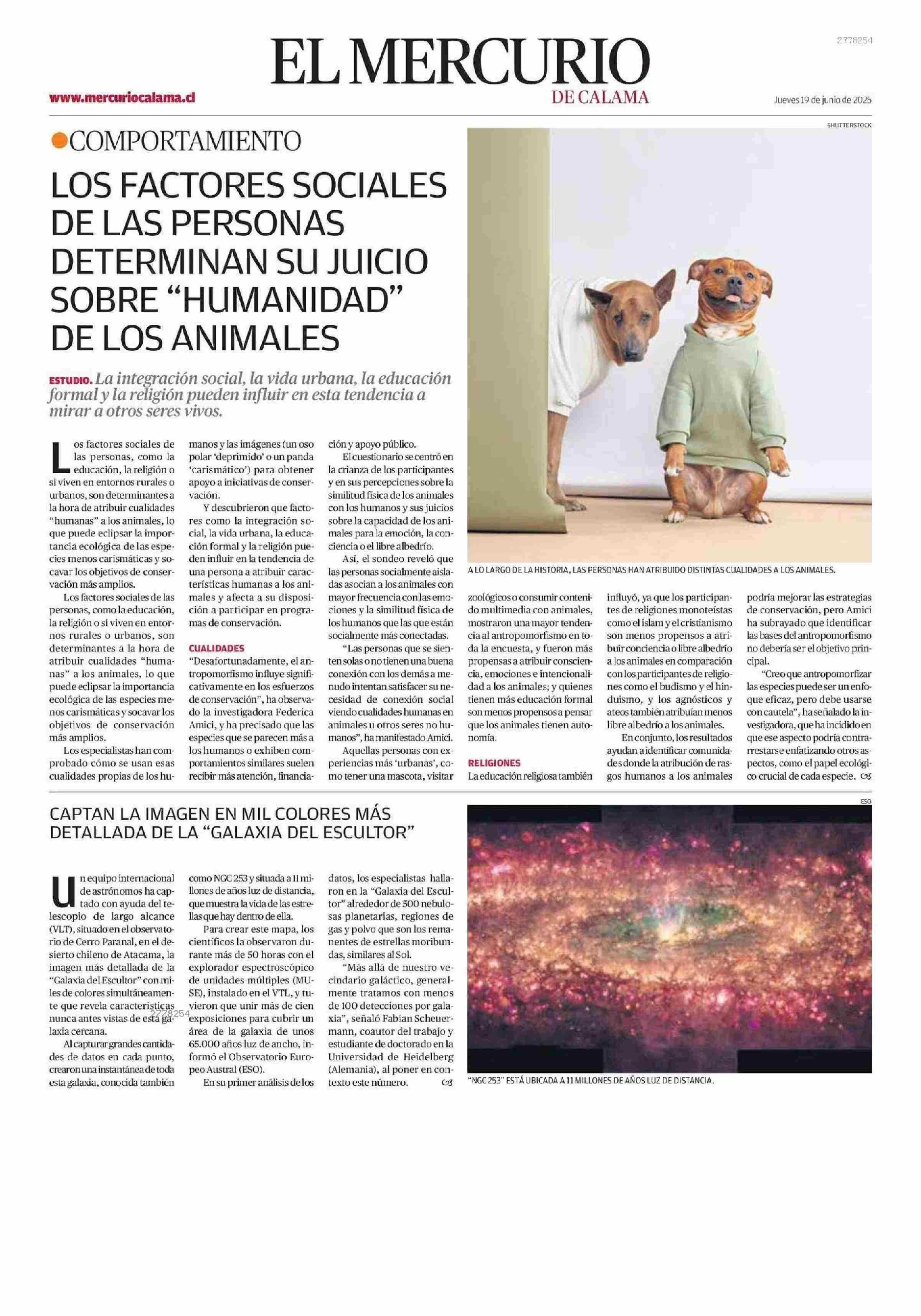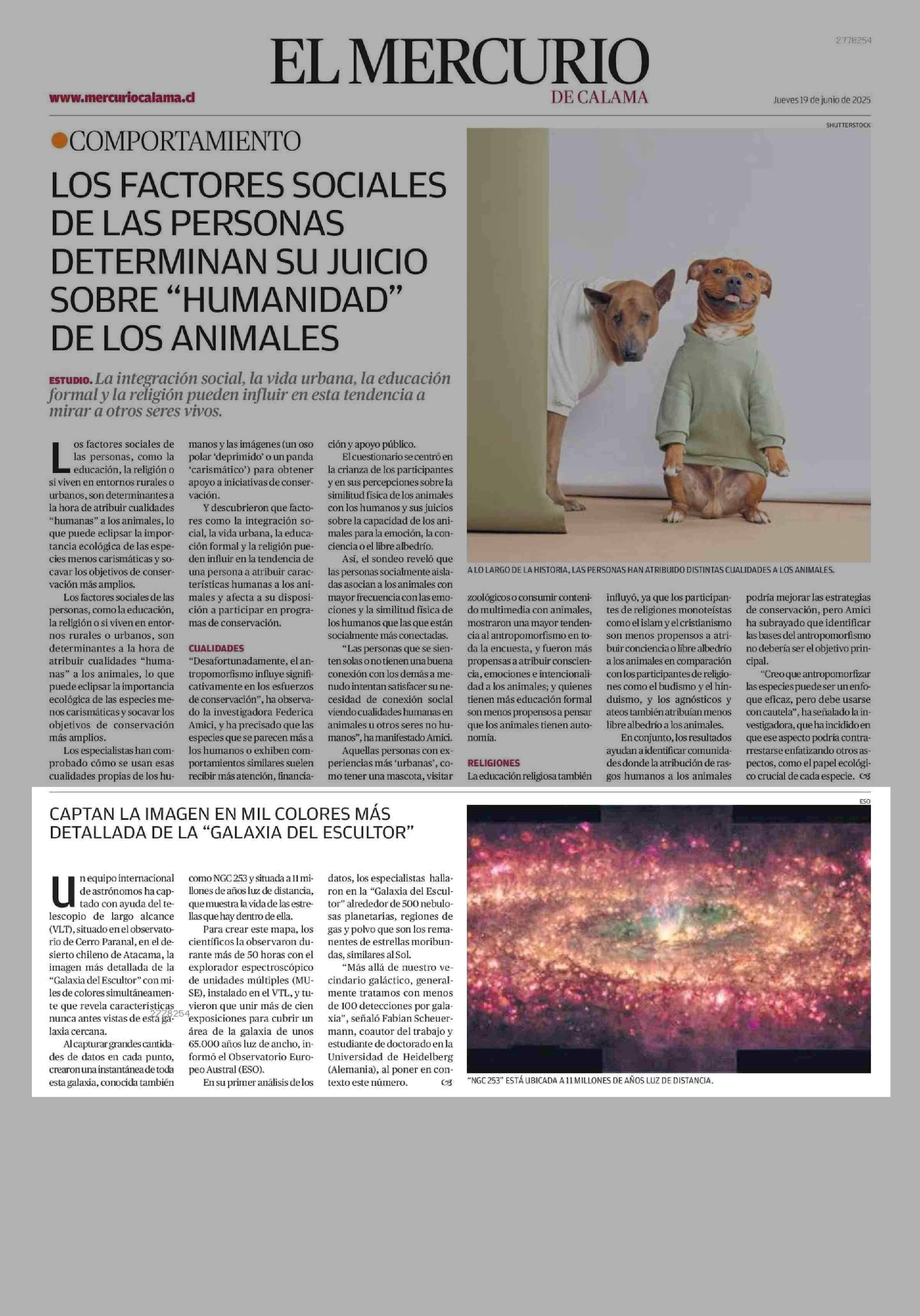 CAPTAN LA IMAGEN EN MIL COLORES MÁS DETALLADA DE LA "GALAXIA DEL ESCULTOR" 19-06-2025 El Mercurio de Calama |