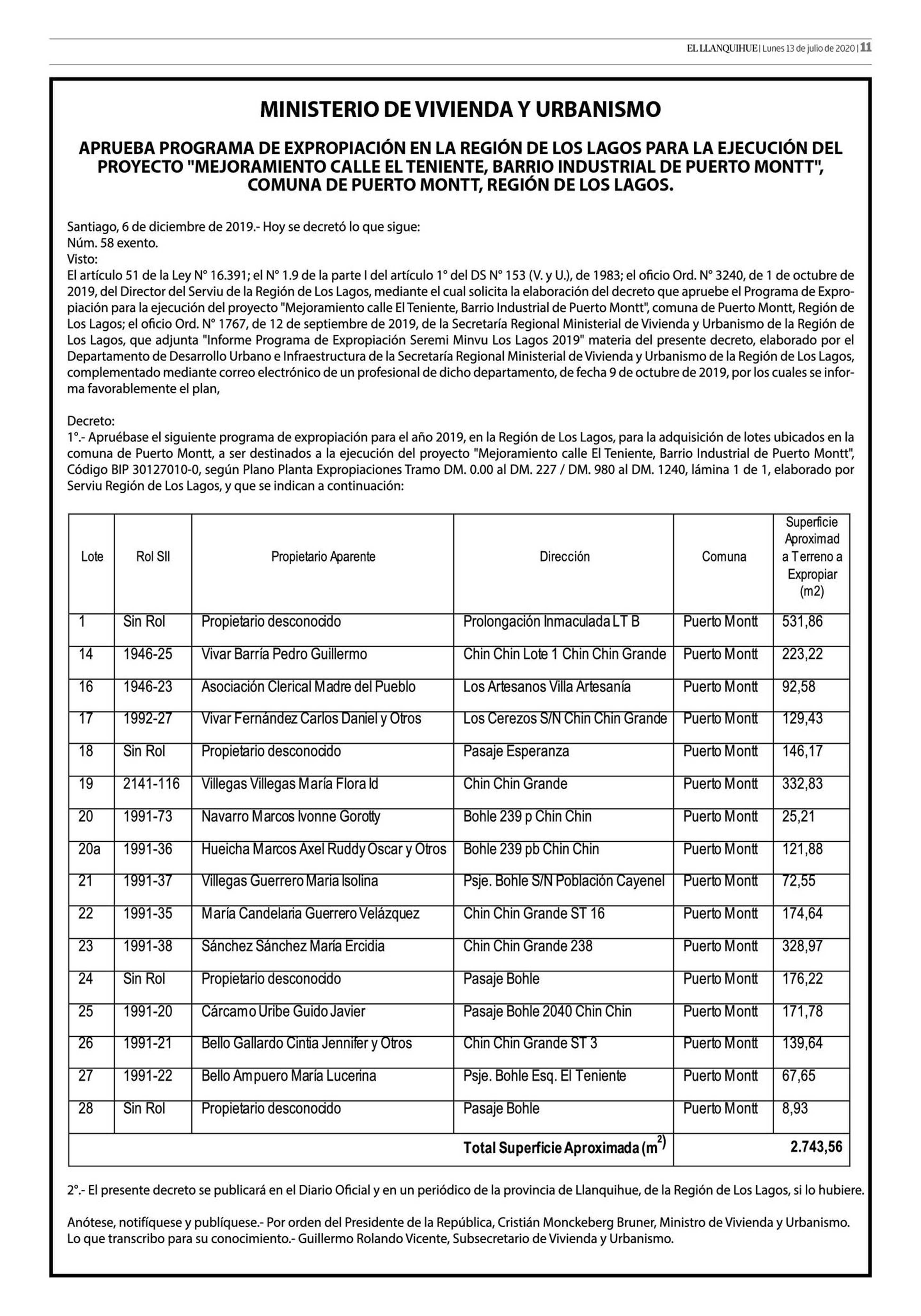 MINISTERIO DE VIVIENDA Y URBANISMO 13-07-2020 El Llanquihue |