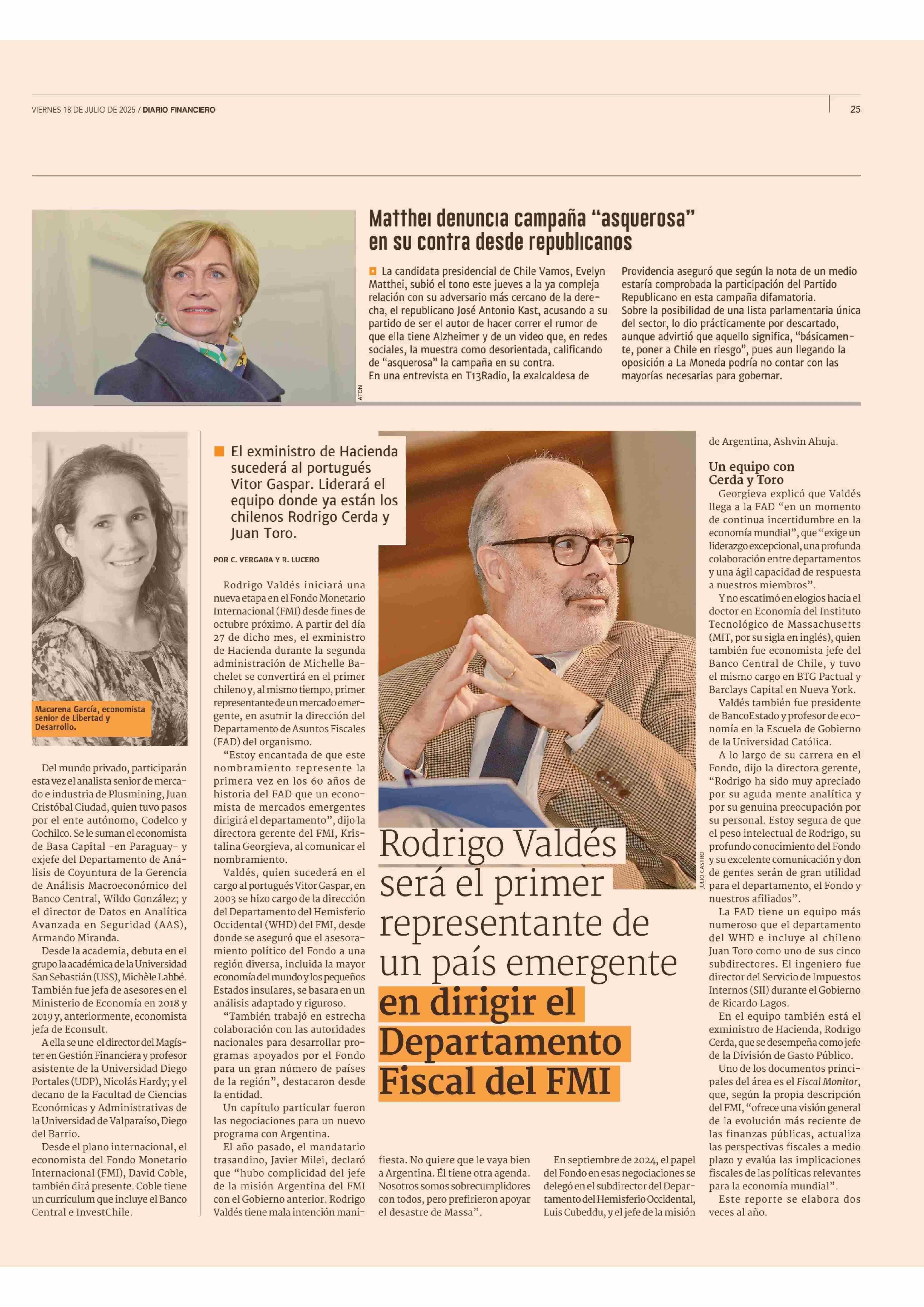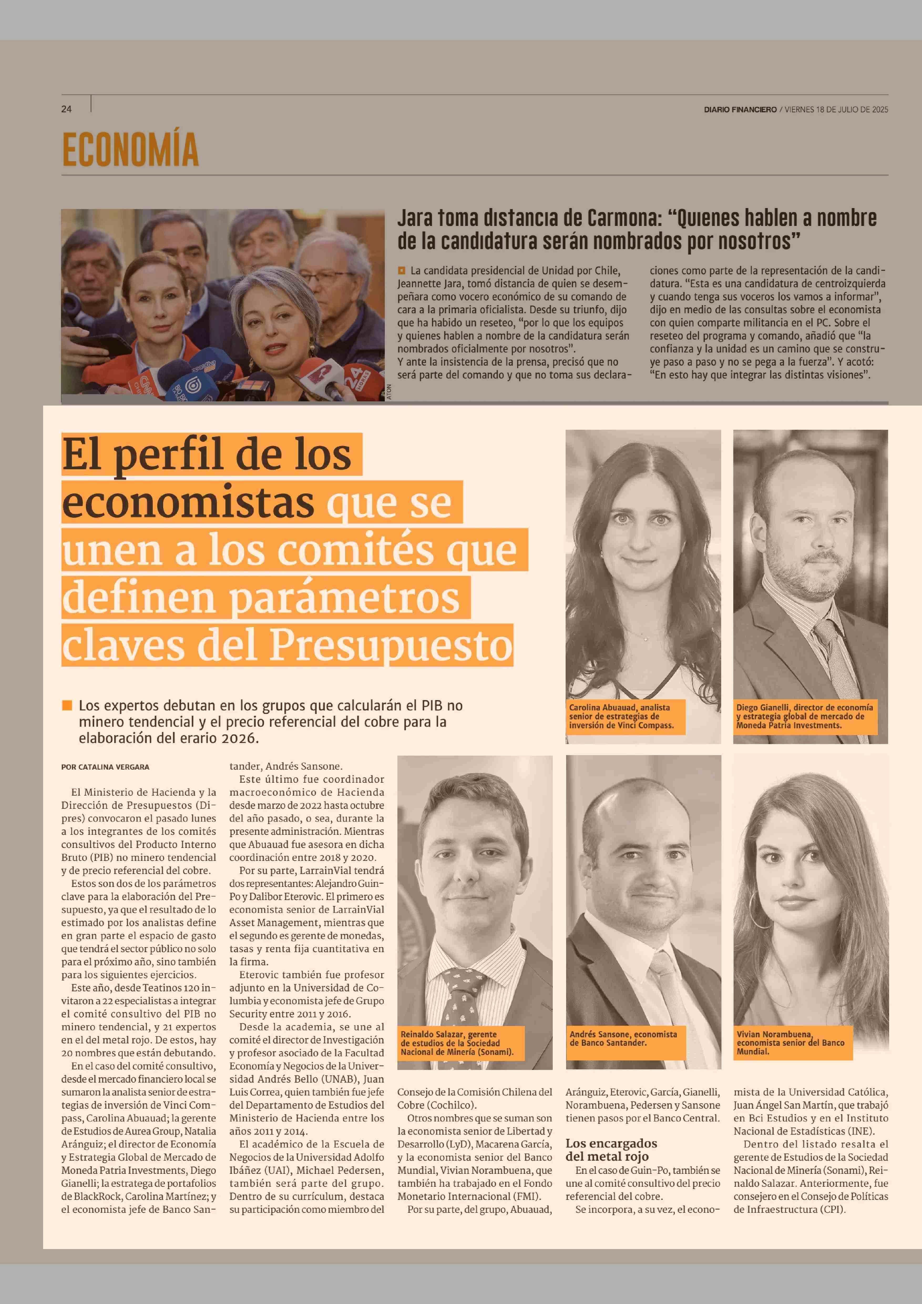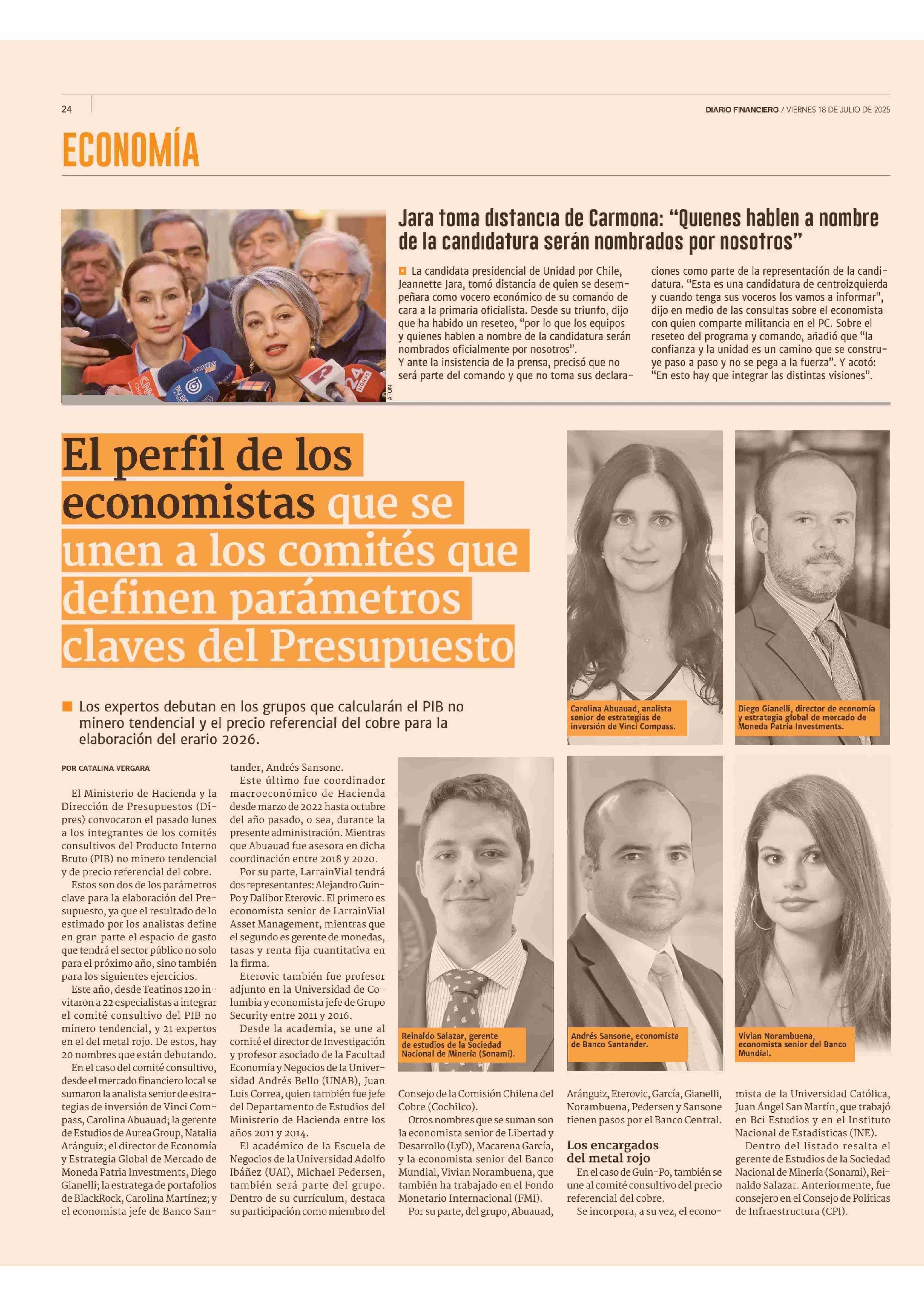El perfil de los economistas que se unen a los comités que definen parámetros claves del Presupuesto 18-07-2025 Diario Financiero |