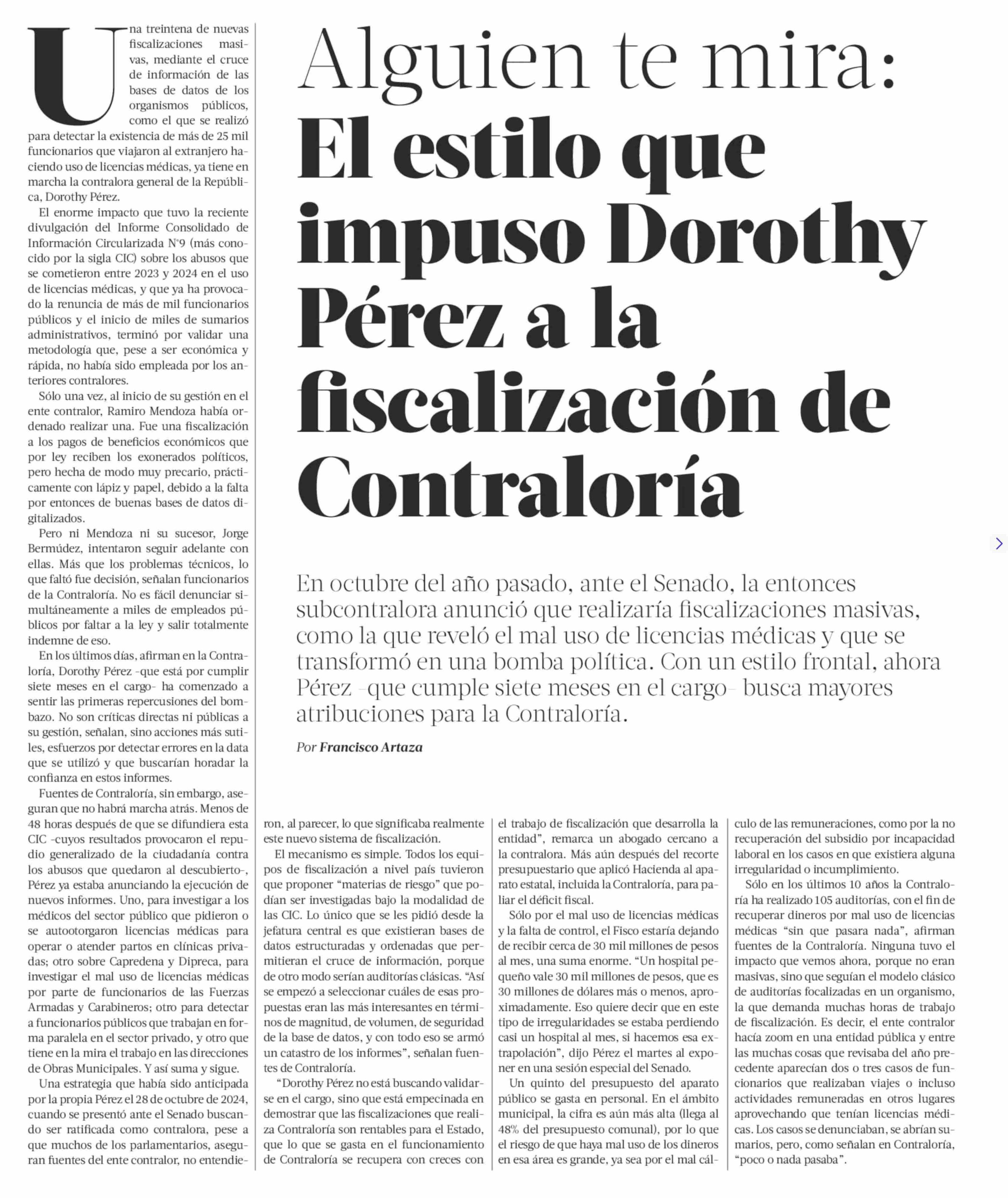 Alguien te mira: El estilo que impuso Dorothy Pérez a la fiscalización de Contraloría 01-06-2025 La Tercera |