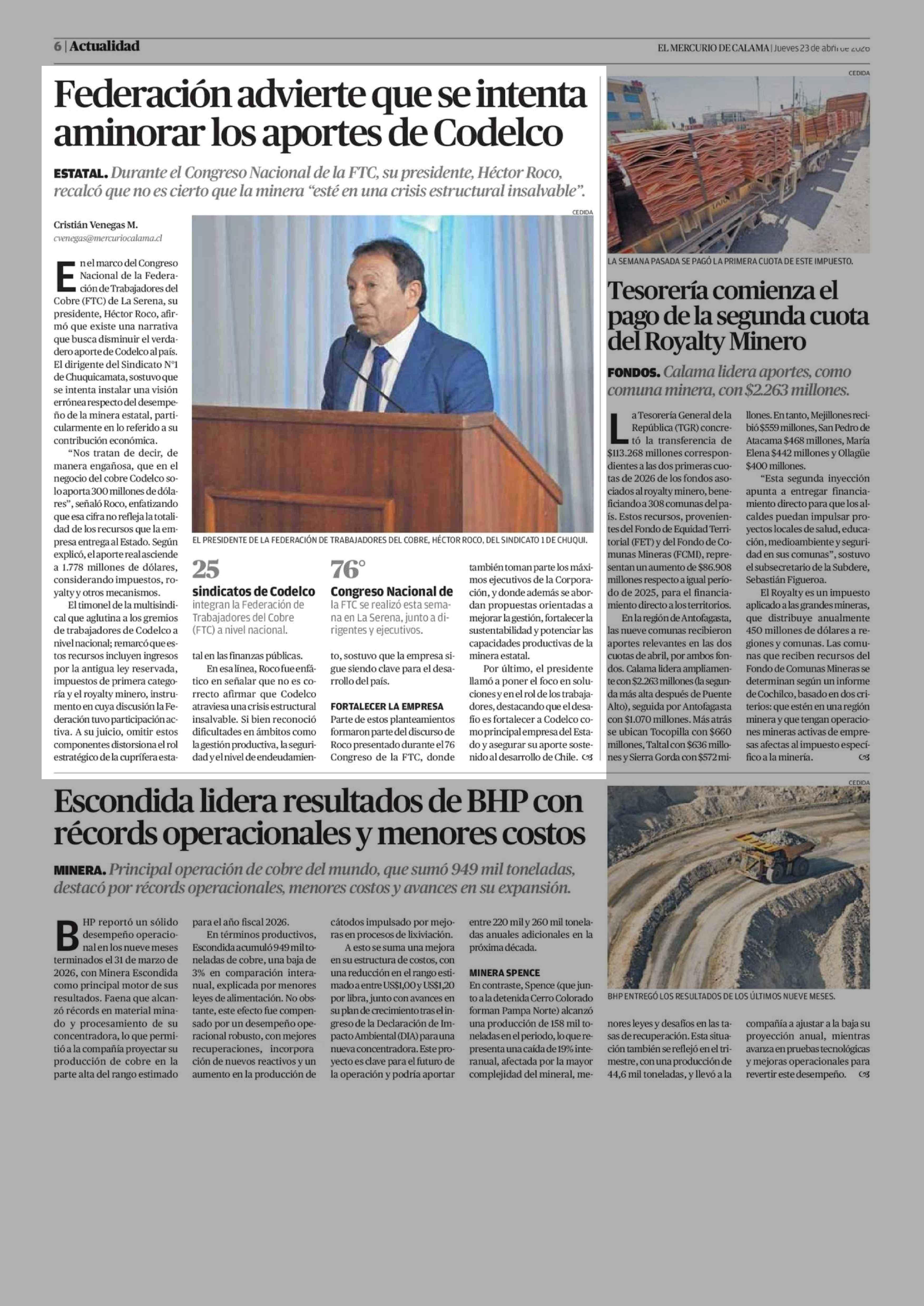 Fuente: El Mercurio de Calama (El Mercurio de Calama) Página(s): 6