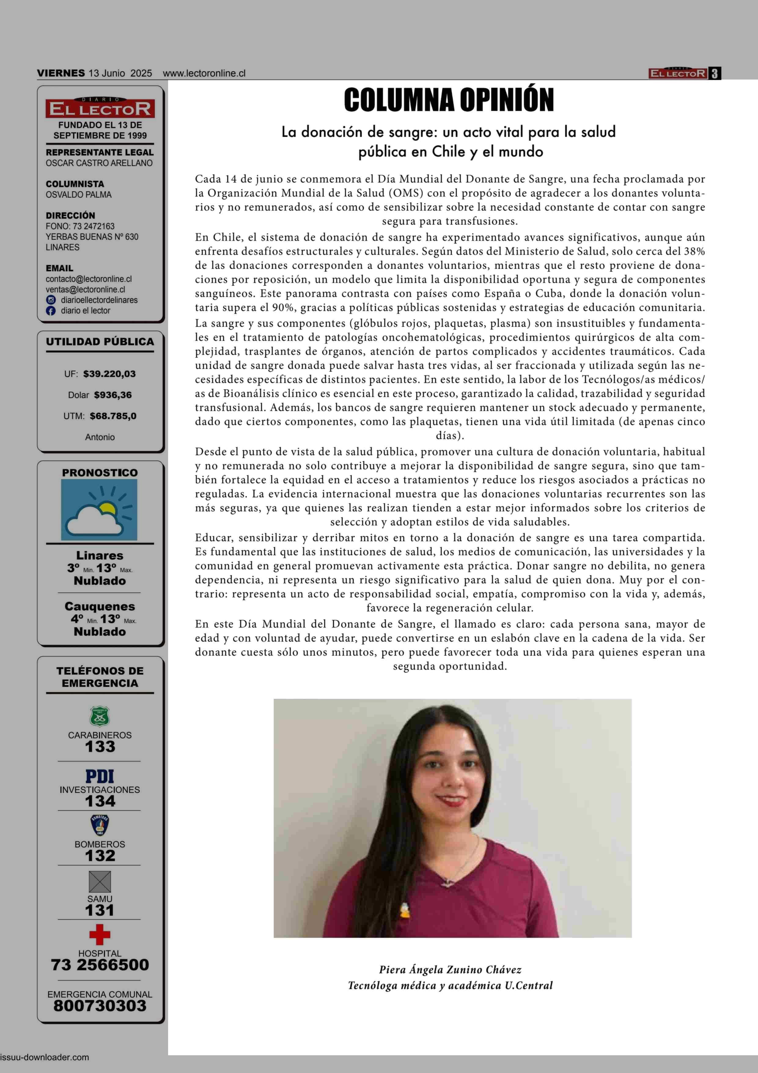 COLUMNAS DE OPINIÓN: un acto vital para la salud pública en Chile y el mundo 13-06-2025 El Lector |