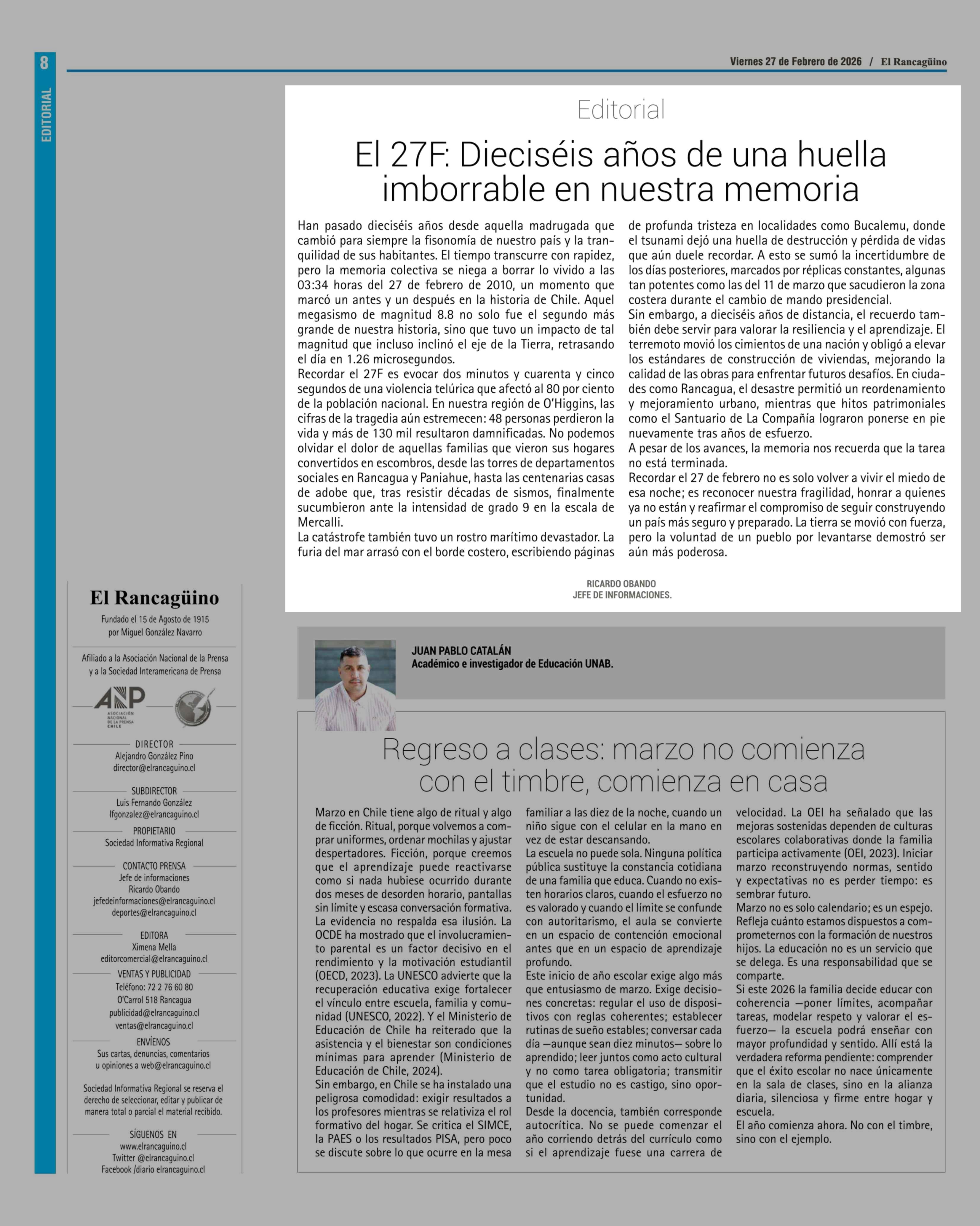 Fecha: 27-02-2026 Sector: Editorial Región: Región del Libertador General Bernardo O'Higgins