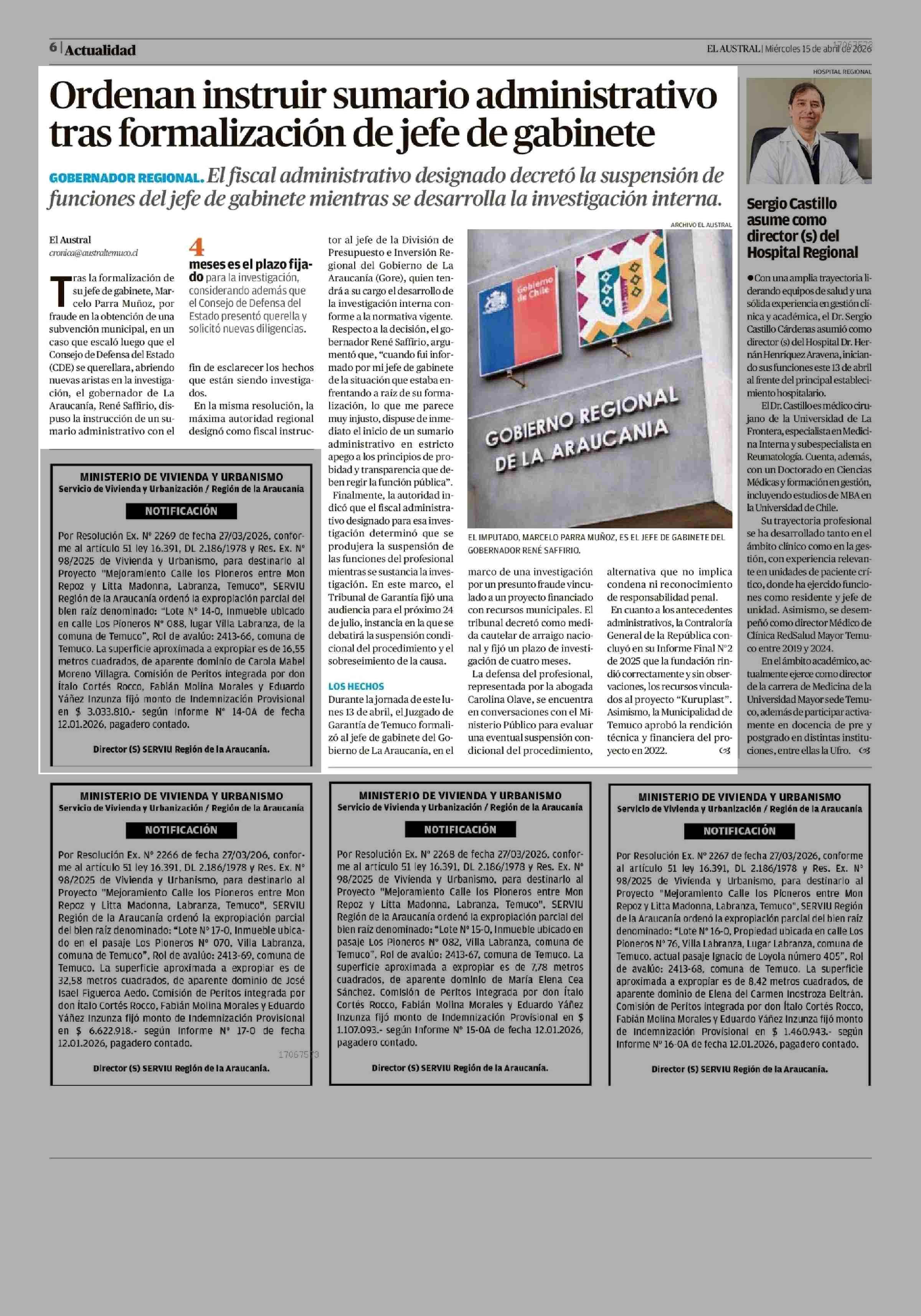 Ordenan instruir sumario administrativo tras formalización de jefe de gabinete 15-04-2026 El Austral de la Araucanía |