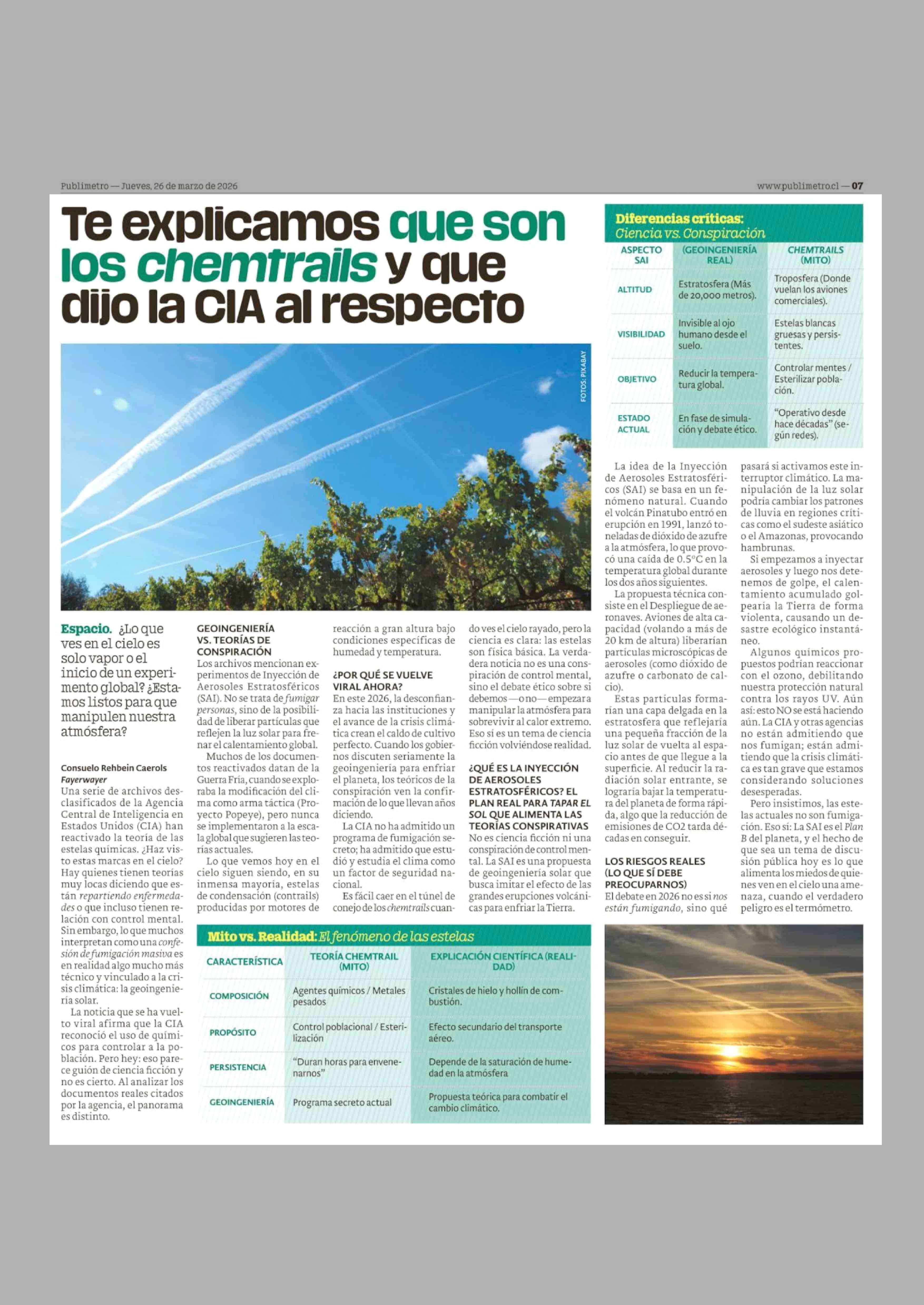 Te explicamos que son los chemtrails y que dijo la CIA al respecto 26-03-2026 Publimetro |