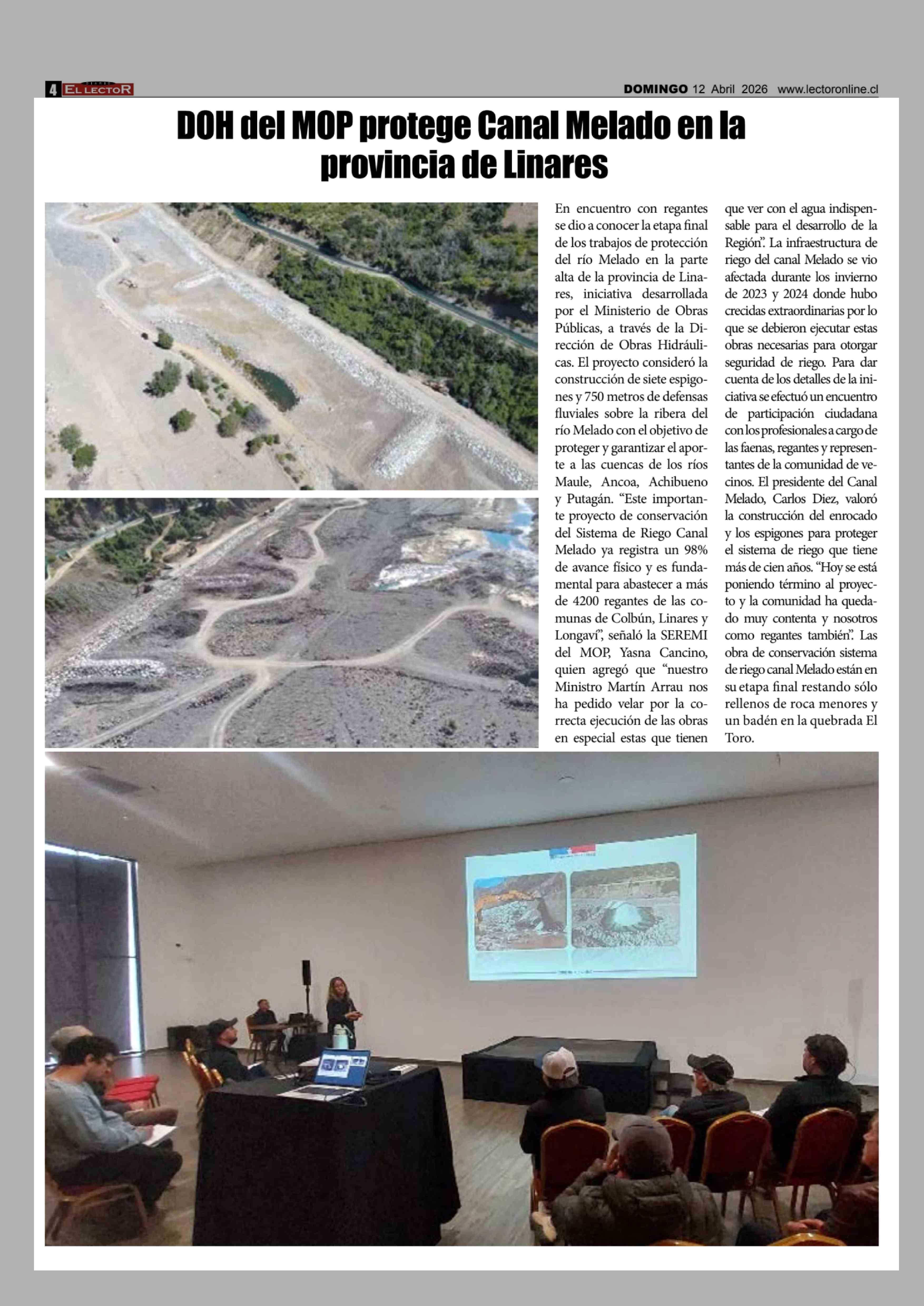 Título: DOH del MOP protege Canal Melado en la provincia de Linares