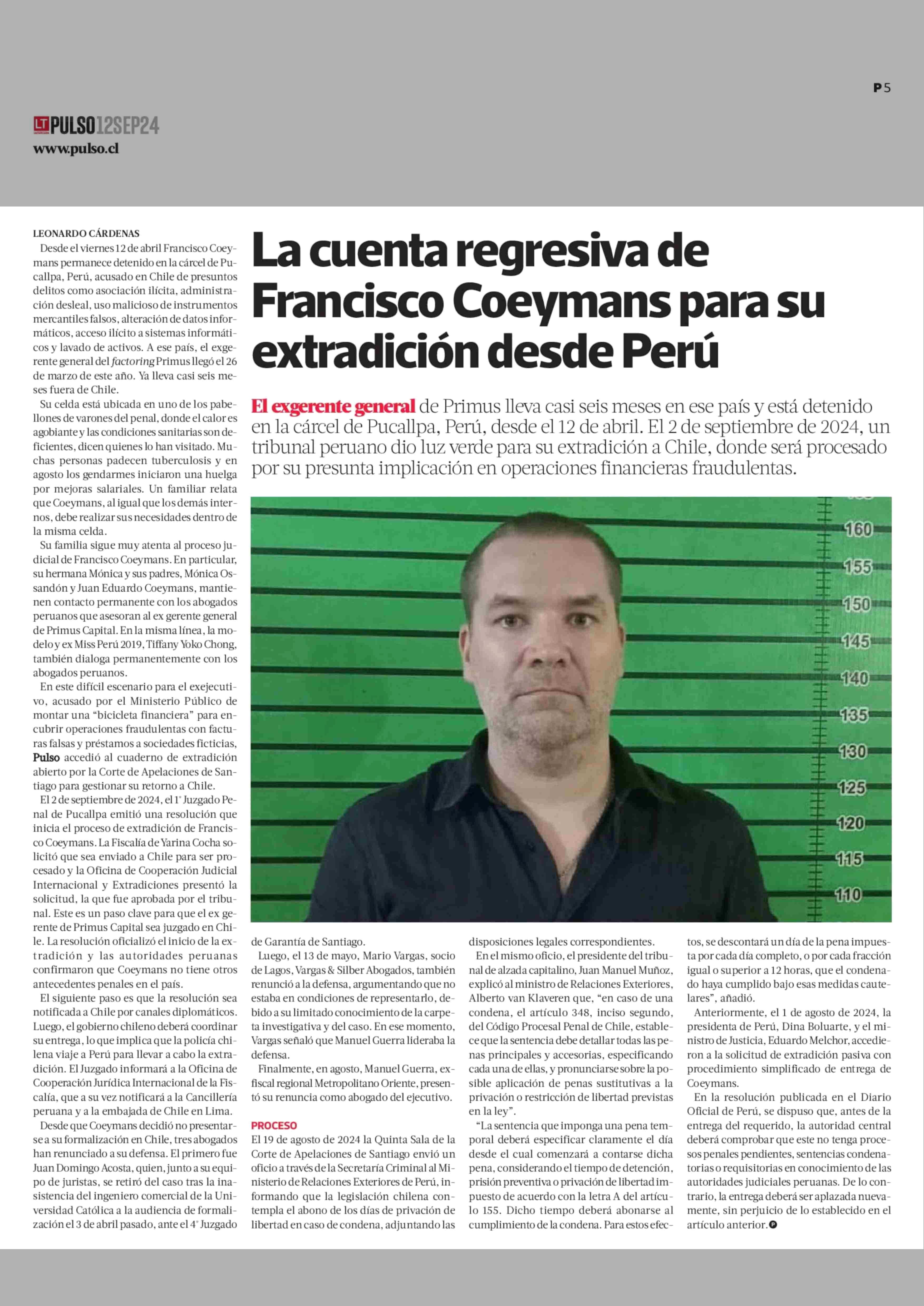 La cuenta regresiva de Francisco Coeymans para su extradición desde Perú 12-09-2024 La Tercera |