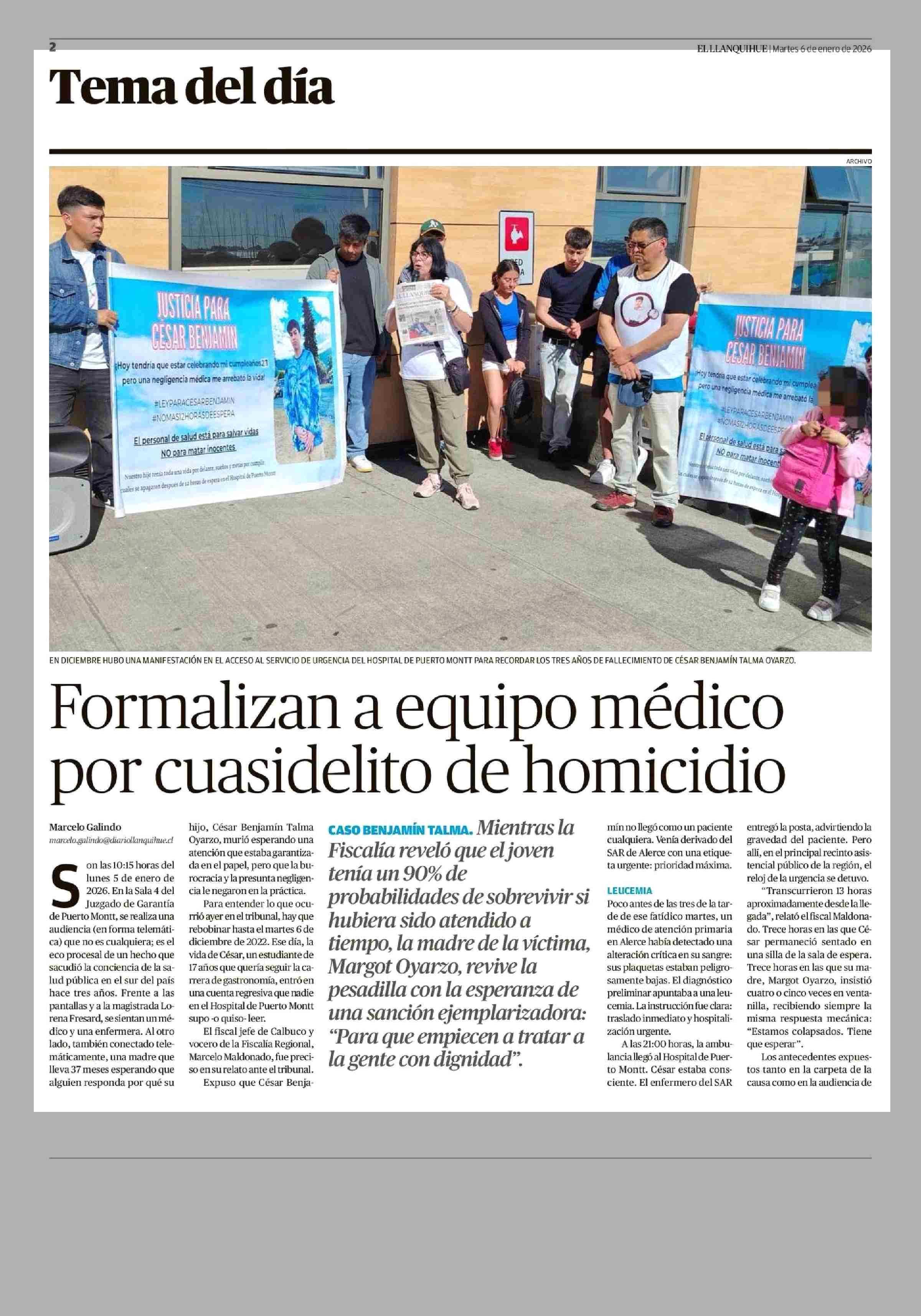 Título: Formalizan a equipo médico por cuasidelito de homicidio