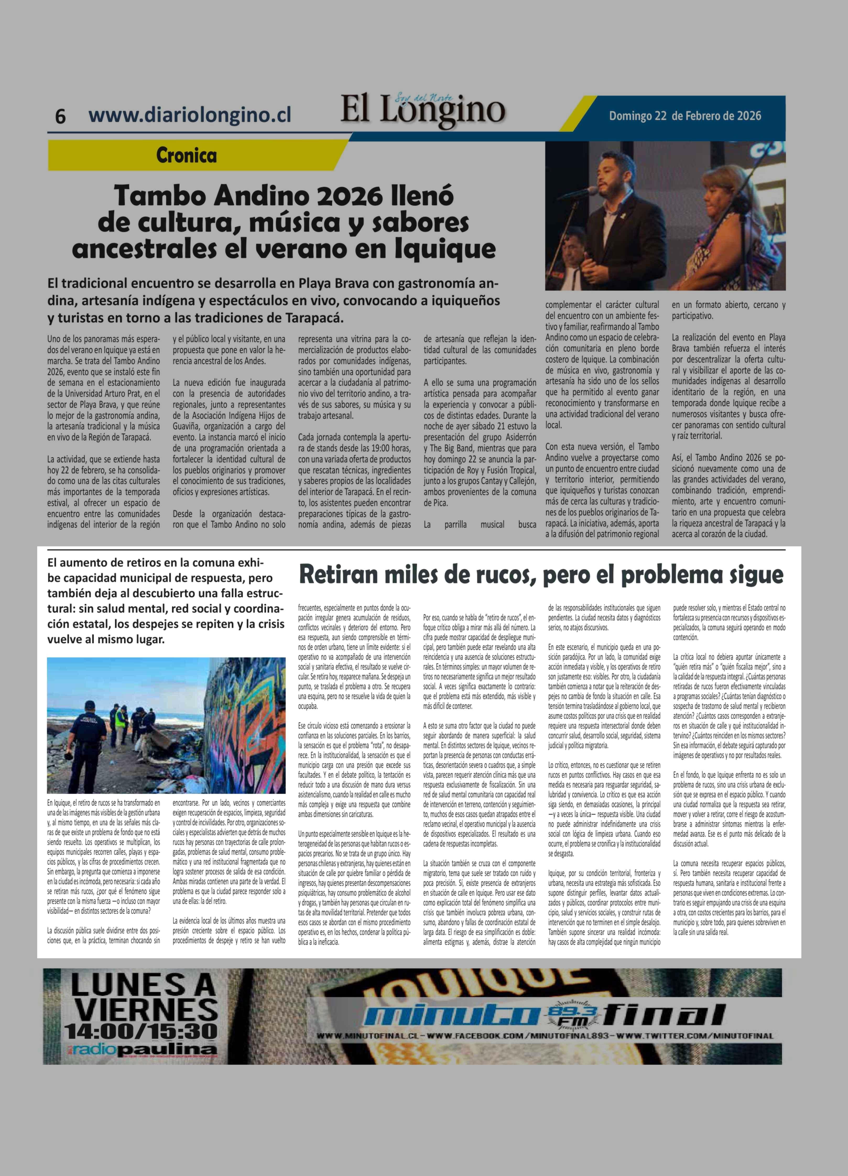 | Fecha: | 22-02-2026 | Sector: | Noticia general | Región: | Región de Tarapacá |