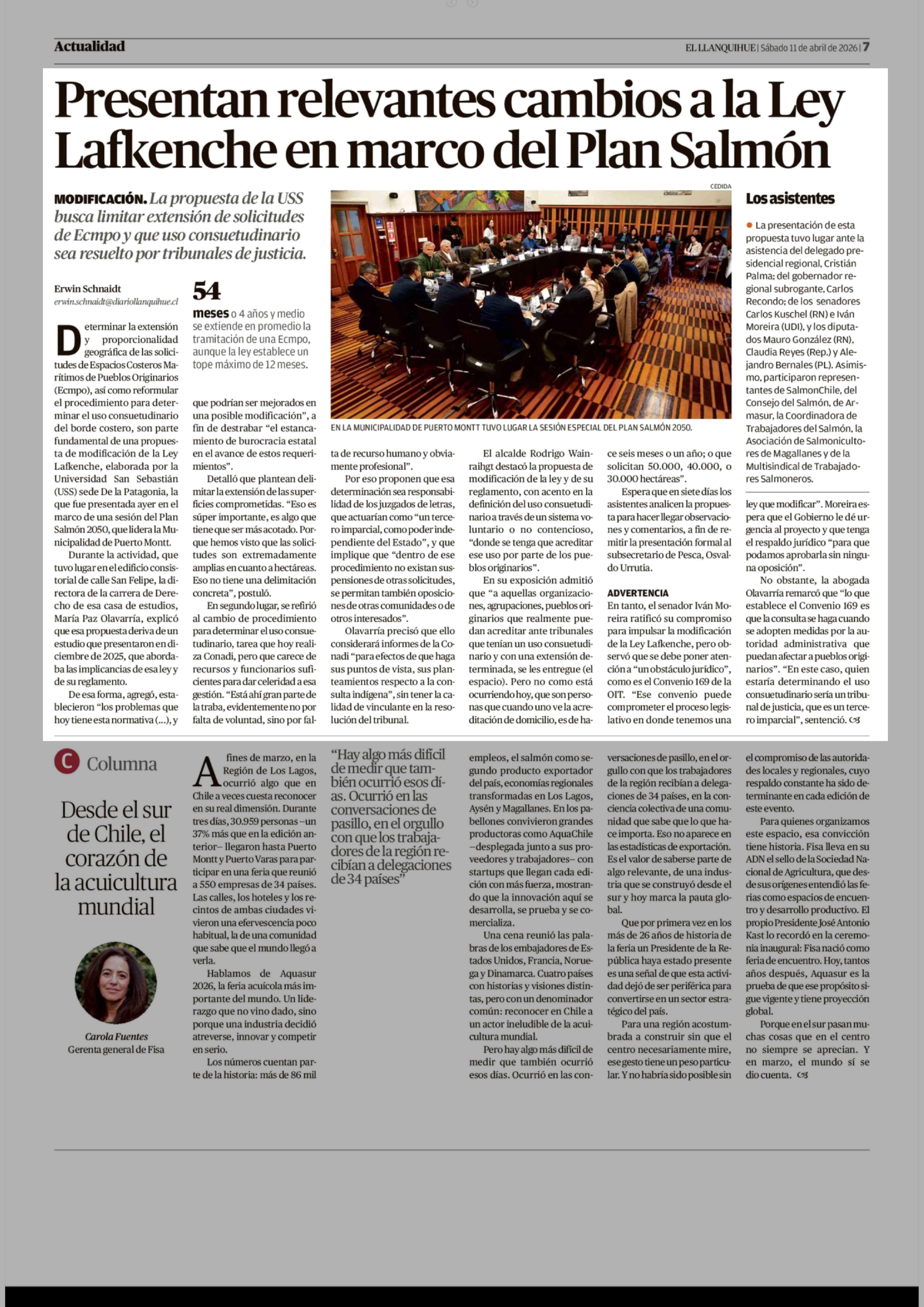 Presentan relevantes cambios a la Ley Lafkenche en marco del Plan Salmón 11-04-2026 El Llanquihue |