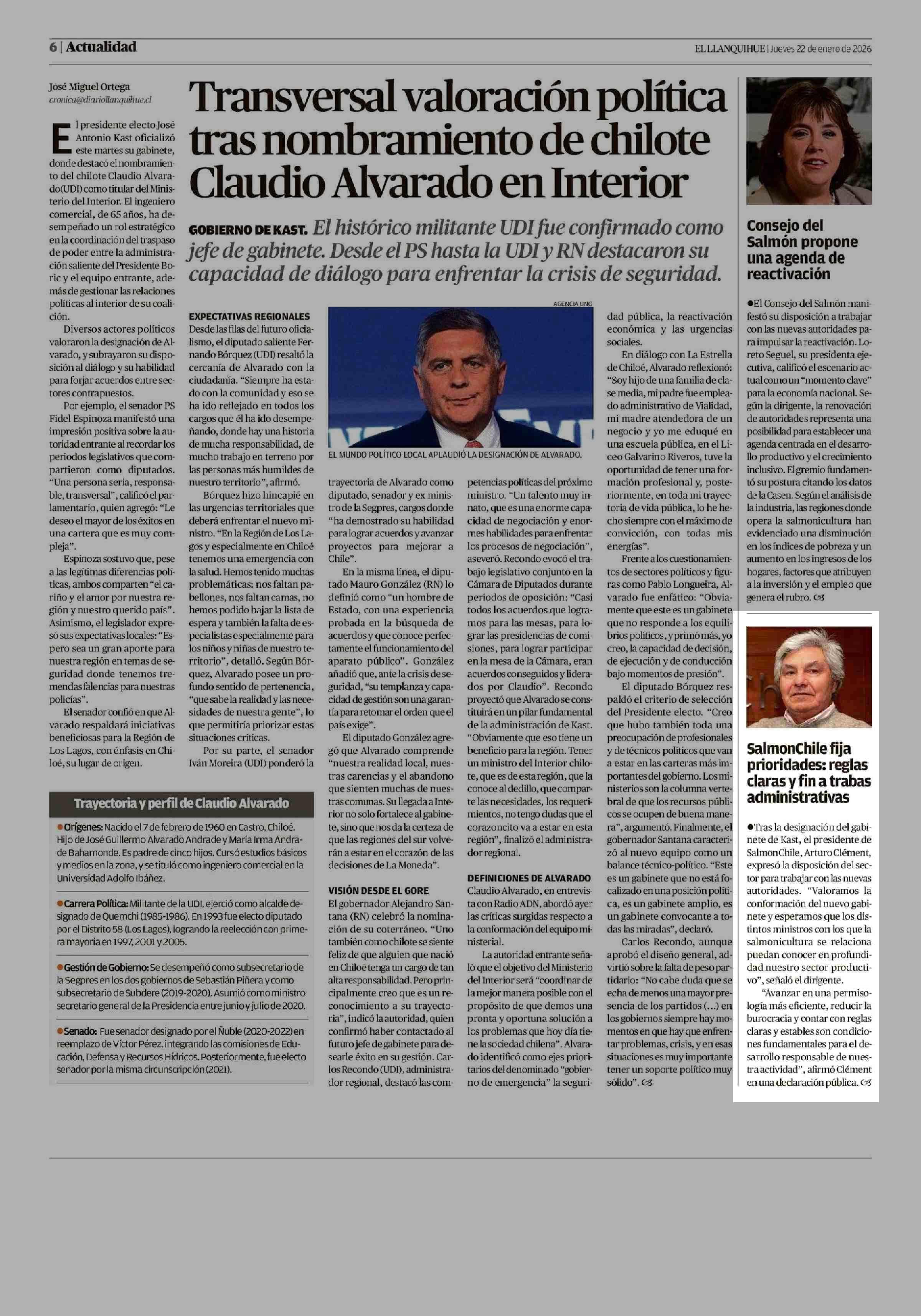 SalmonChile fija prioridades: reglas claras y fin a trabas administrativas 22-01-2026 El Llanquihue |